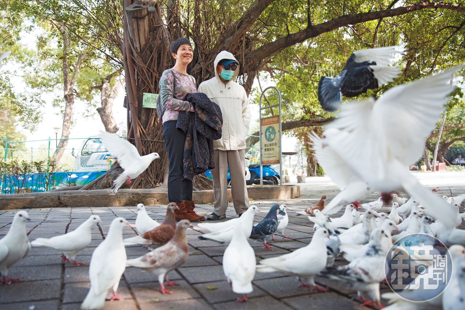 我們在公園散步,陳文慧挑了亮光處坐下,日光顯現臉頰的暗斑,眼角的紋,像是慈愛的母親。她檢視阿趙的十幾包藥袋,一邊叮嚀按時吃藥,一邊用筆在藥袋上寫下更白話的解說:「利福全,對情緒有減緩功能的助眠劑;離憂、穩舒眠,睡前吃。」因為大兒子的憂鬱症,陳文慧對精神疾病藥物極為了解。