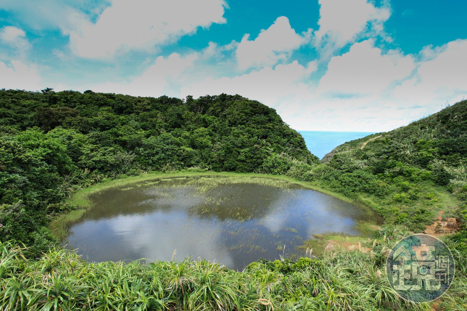 蘭嶼小天池是一個火山口湖,由雨水滙聚而成,是原住民的傳統禁地,雅美族/達悟族進入時,會以五節芒的葉子擦拭身體,以求去邪,來到小天池要望見湖水,也需要一點運氣,若是連續晴天,湖水會漸漸乾涸,有幸當天遇到滿水位,藍天倒映在湖水之中,就是一顆天使的眼淚,山凹處剛好對著海洋,猶如置身幻境。