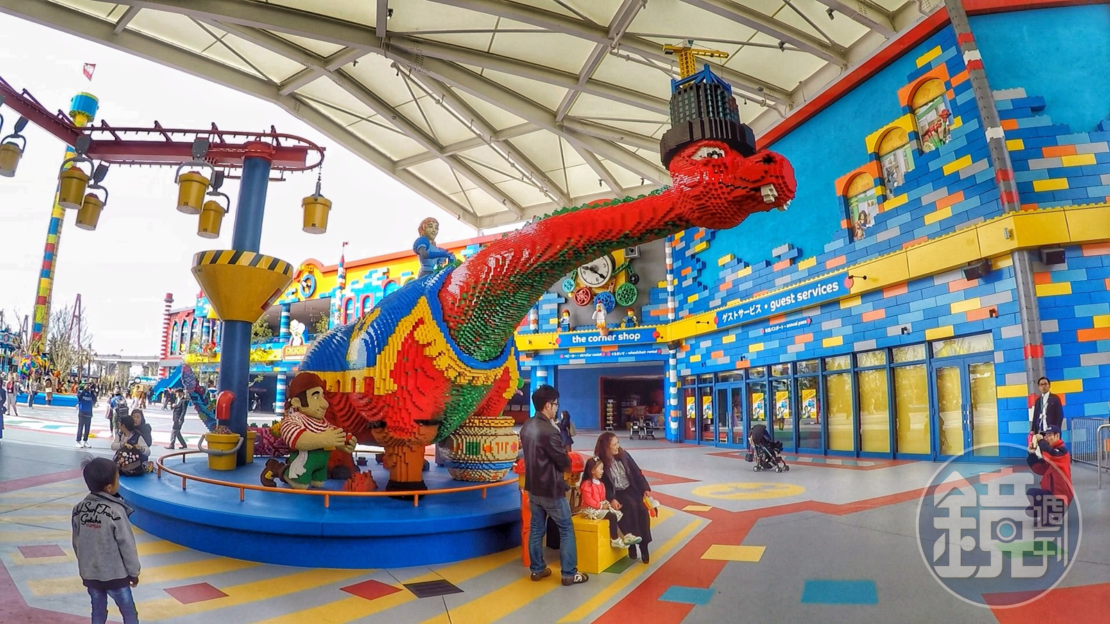 進入樂高樂園門口,就見到看見象徵Lego的紅色火龍,在早期的樂高城堡積木中,火龍是不可或缺的角色。在樂園前的紅色火龍不只上面乘坐著公主,四周還環繞著樂高不同主題故事的代表人物,樂高迷絕對會拍個不停。
