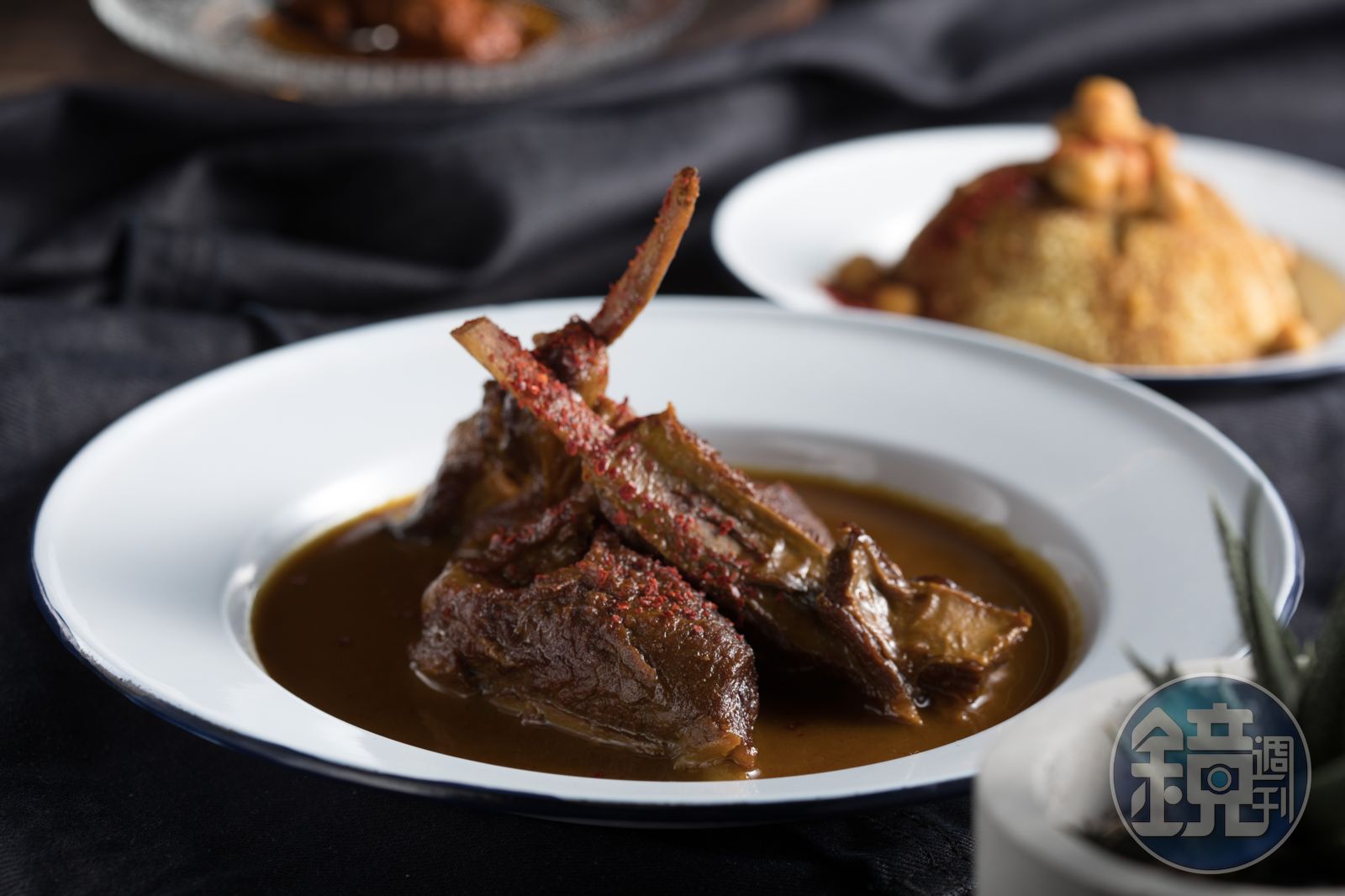 母親的鄉愁,釀成了阿勇菜色的獨特,一道祖傳北非燉羊肉,他選用小綿羊肩、肋排,煎至上色,再慢慢丟入小茴香籽、芫荽籽、薑黃、韓國辣椒粉等香料與蔬菜同煮1小時,不過,他突發奇想加入了另一道傳統菜「摩洛哥檸檬燉雞」的元素:檸檬,「但我不用鹹檸檬,而是做成黃檸檬糖漿。」蜜漬的酸甜讓阿勇的燉羊肉更鮮爽,連母親都大讚青出於藍。