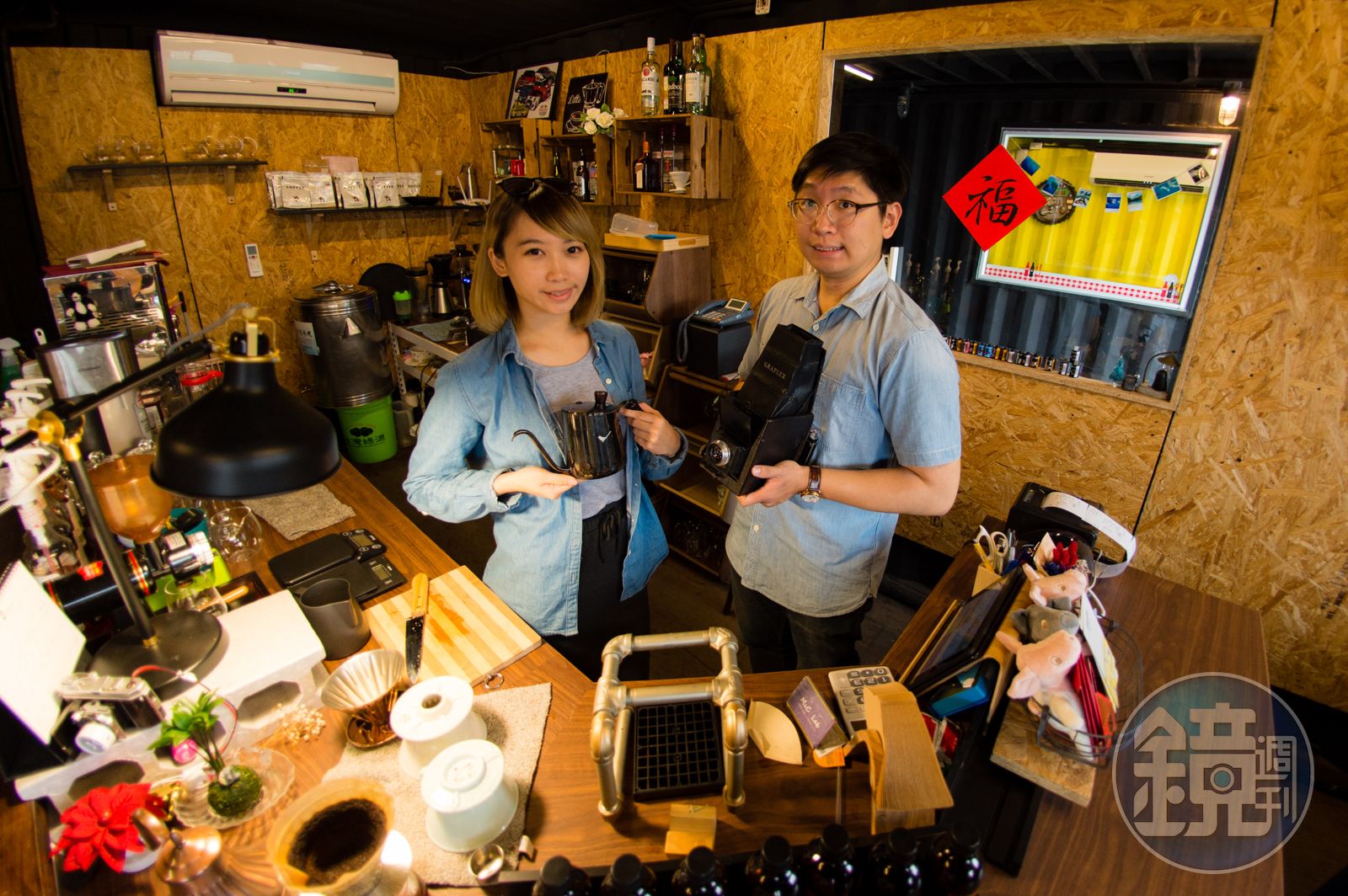 兩個人有不少共通性,1990年生的曾募扉打從國中就愛上咖啡,大學念的是休閒管理系,畢業後跑到連鎖咖啡館工作,後來返鄉鑽研烘豆,滿腦子是咖啡夢。1988年次的李長林追求浪漫的古典攝影,收藏滿屋子的骨董相機、底片膠捲,如今成了店裡有味道的裝飾。少年老闆的故事裝在貨櫃裡,我莞爾一笑,其實,人生不也是一種實驗?