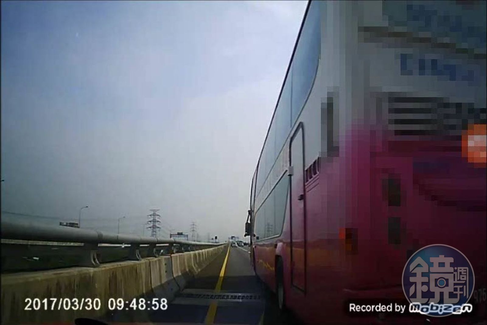 上午9時48分,李姓駕駛行經機場系統路段時,有1輛遊覽車從後方逼近李男轎車,並閃燈要求李男讓道,但高承載專用道右側為雙白實線,依照規定不得任意變換車道,李男繼續行駛在專用道路上,不為所動。