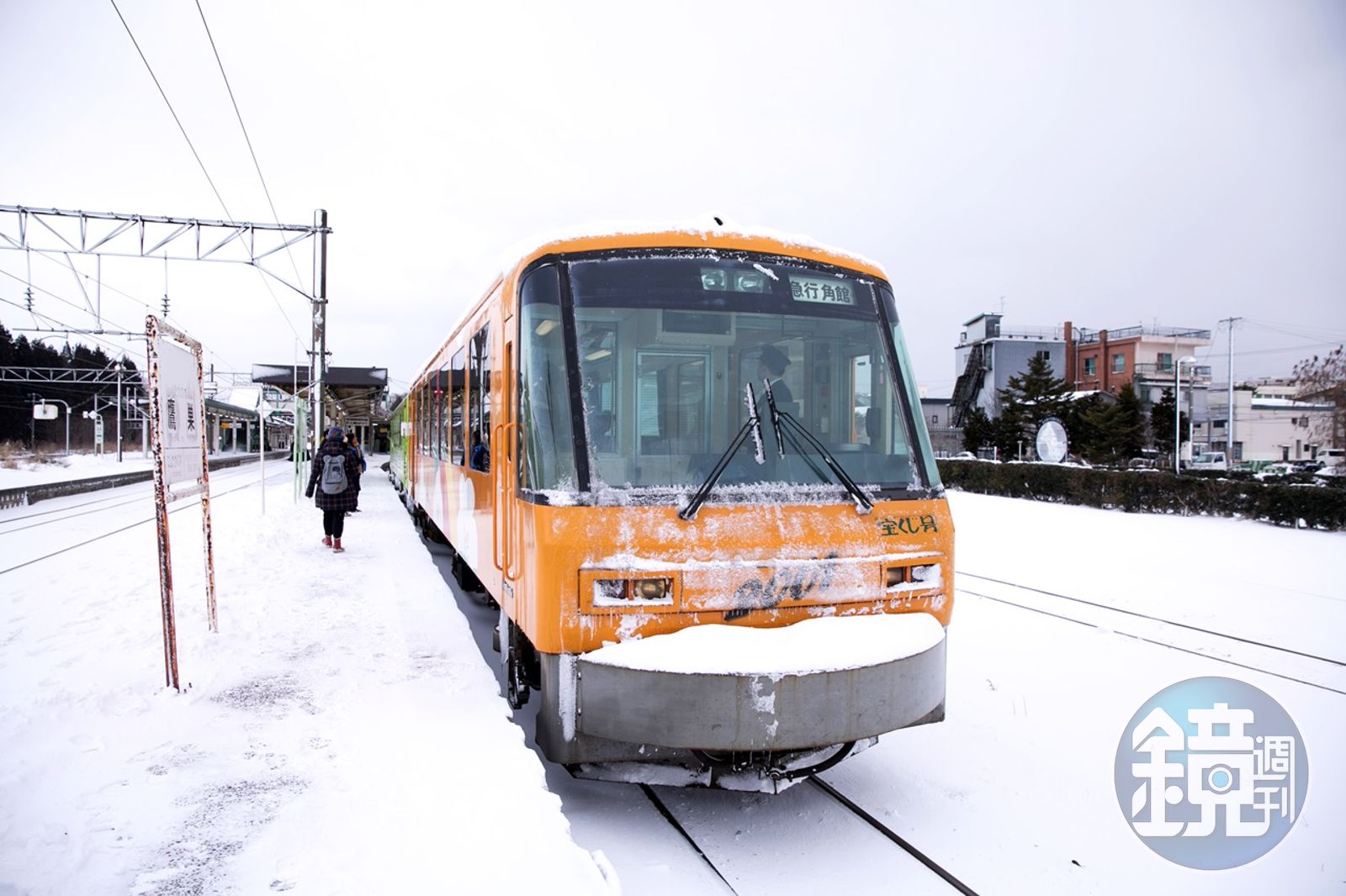 從全線最北的鷹巢站上車,小小的木造車站,在白雪襯托下失去彩度,卻醞釀出冬季旅行的寂寥感。當AN2000形氣動車緩緩滑入月台時,鉻黃色車頭上已經結起了厚厚的冰霜。