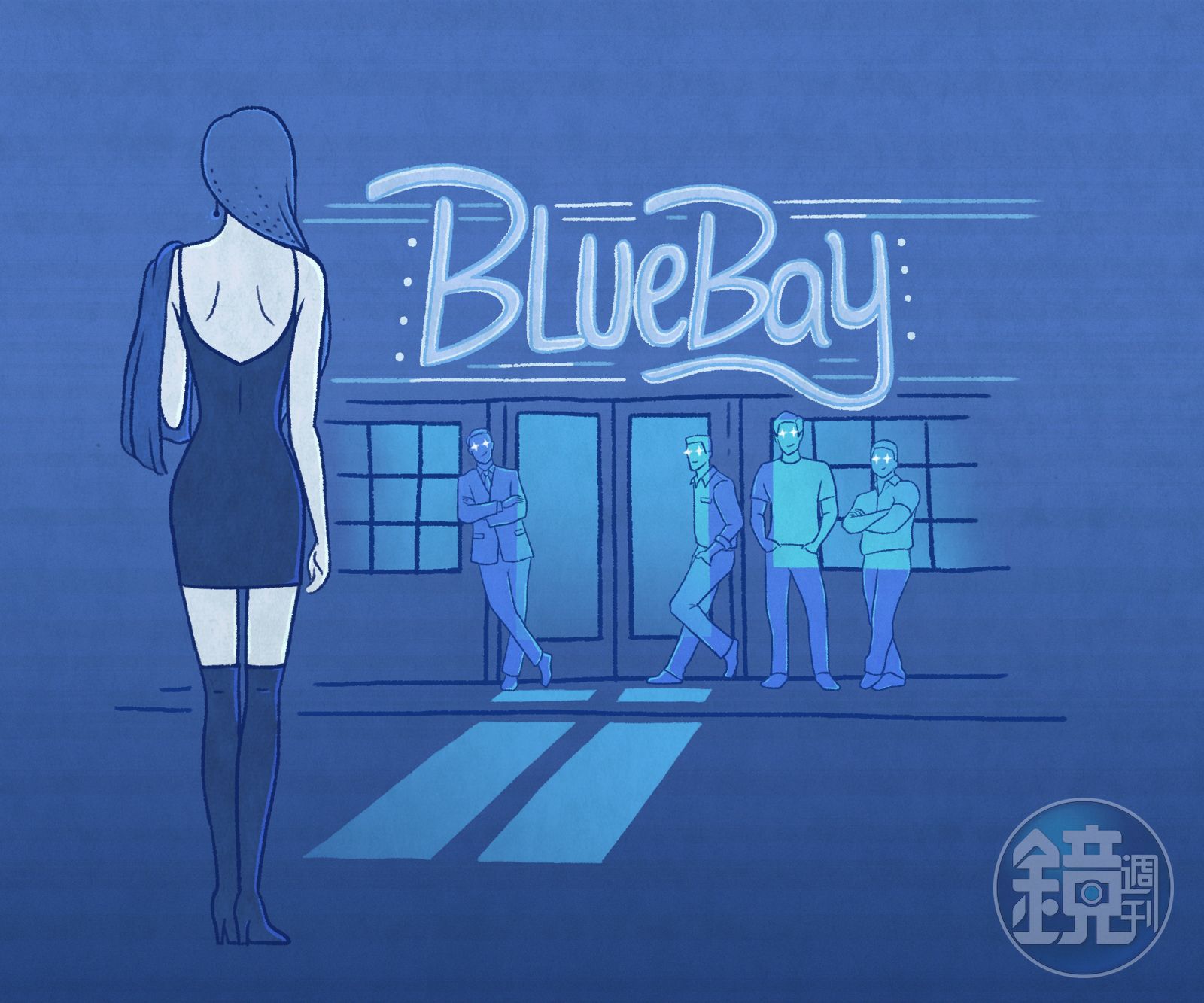 Blue Bay不是那一種店,她聽同事小美提起過,小美是穿著打扮看起來就很OL的女孩,在她們這個4人小公司擔任公關,時常跟著老闆到處開會,午餐時間會帶她去某某小店吃商業午餐,領薪水的日子,也曾帶她到附近的法國餐廳吃過法國菜(花去她心疼死了的三千塊),Blue Bay位於商業旅館地下樓,方便客人下去喝一杯,半夜12點後開放跳舞,小美說每次去那兒,都有人來搭訕。