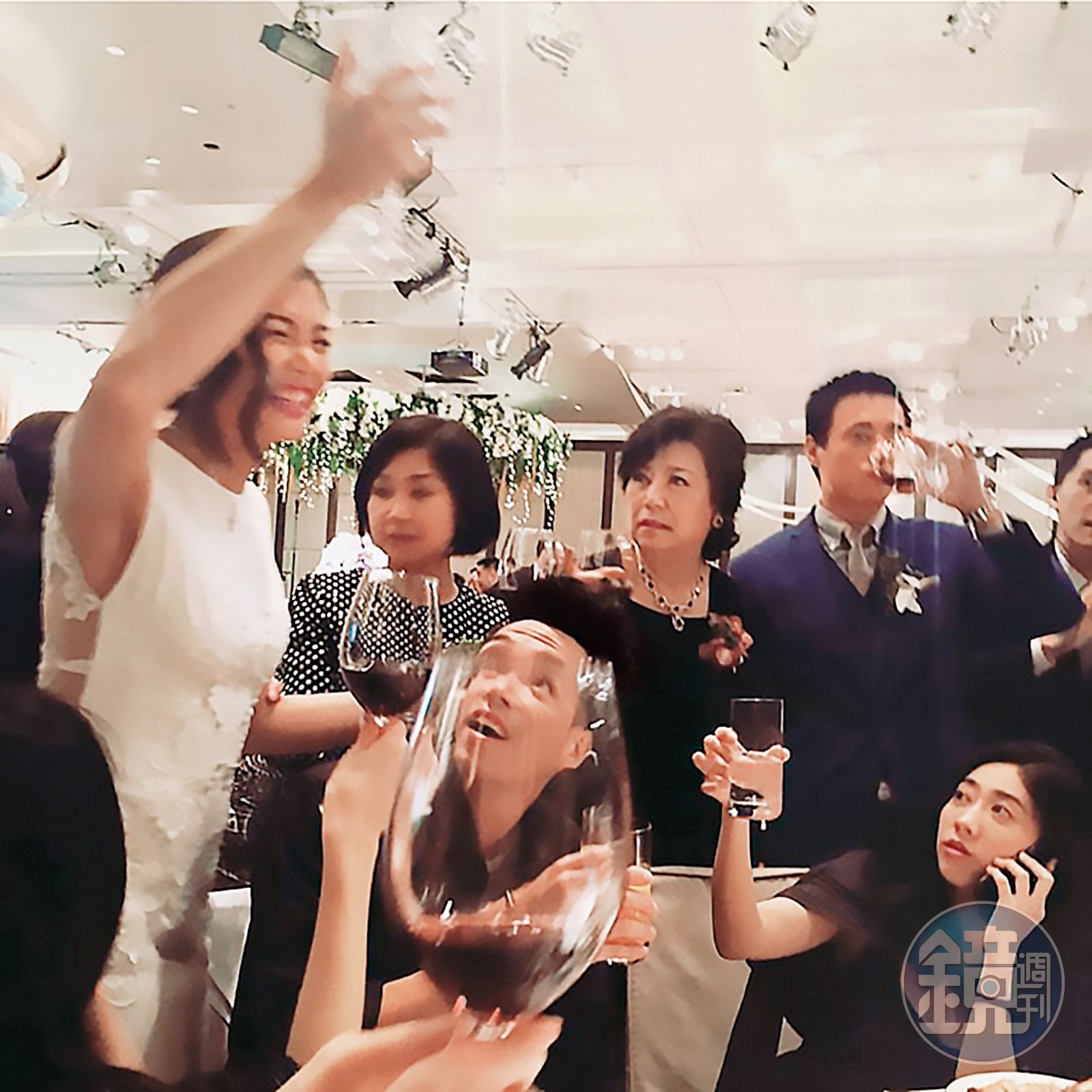 只見新郎蔣友青跟新娘周玟君整場除了形影不離,甚至感覺有點喝嗨了的新娘,整個人都掛在新郎身上,讓主婚人蔣方智怡看傻了眼。蔣方智怡一手拿著酒杯笑得開心,看起來風韻猶存。後來新娘還一手勾著婆婆、一手勾著新郎的大哥,也就是蔣友柏,看起來非常融入蔣家。據悉,8日下午蔣友柏為了當晚婚宴,還帶著一家老小出門剪髮,看得出作為大哥的慎重及喜悅。