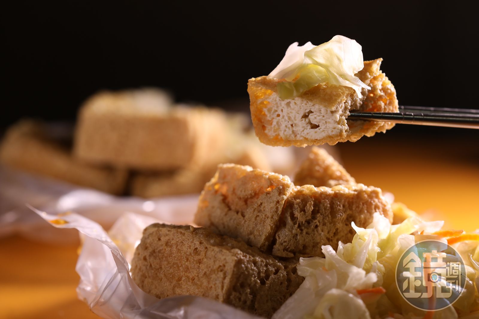 「阿泉麵線」老闆曾坤泉賣臭豆腐20多年,搬過一次店面,但都在許昌街上,最拿手的就是第一次炸10分鐘、上桌前回鍋再炸30秒的臭豆腐,辜成允特別喜歡它外皮脆硬的口感,吃起來咔滋咔滋的,格外香口。