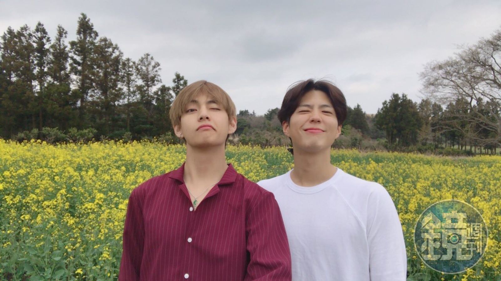 朴寶劍與防彈少年團成員V是麻吉,趁著韓國最近天氣放晴,與正忙著世界巡迴演唱會的V相偕赴濟州島「春遊」,兩人在油菜花田前留下不少擺出搞怪表情和動作的照片,散發出既帥氣又頑皮的可愛魅力。