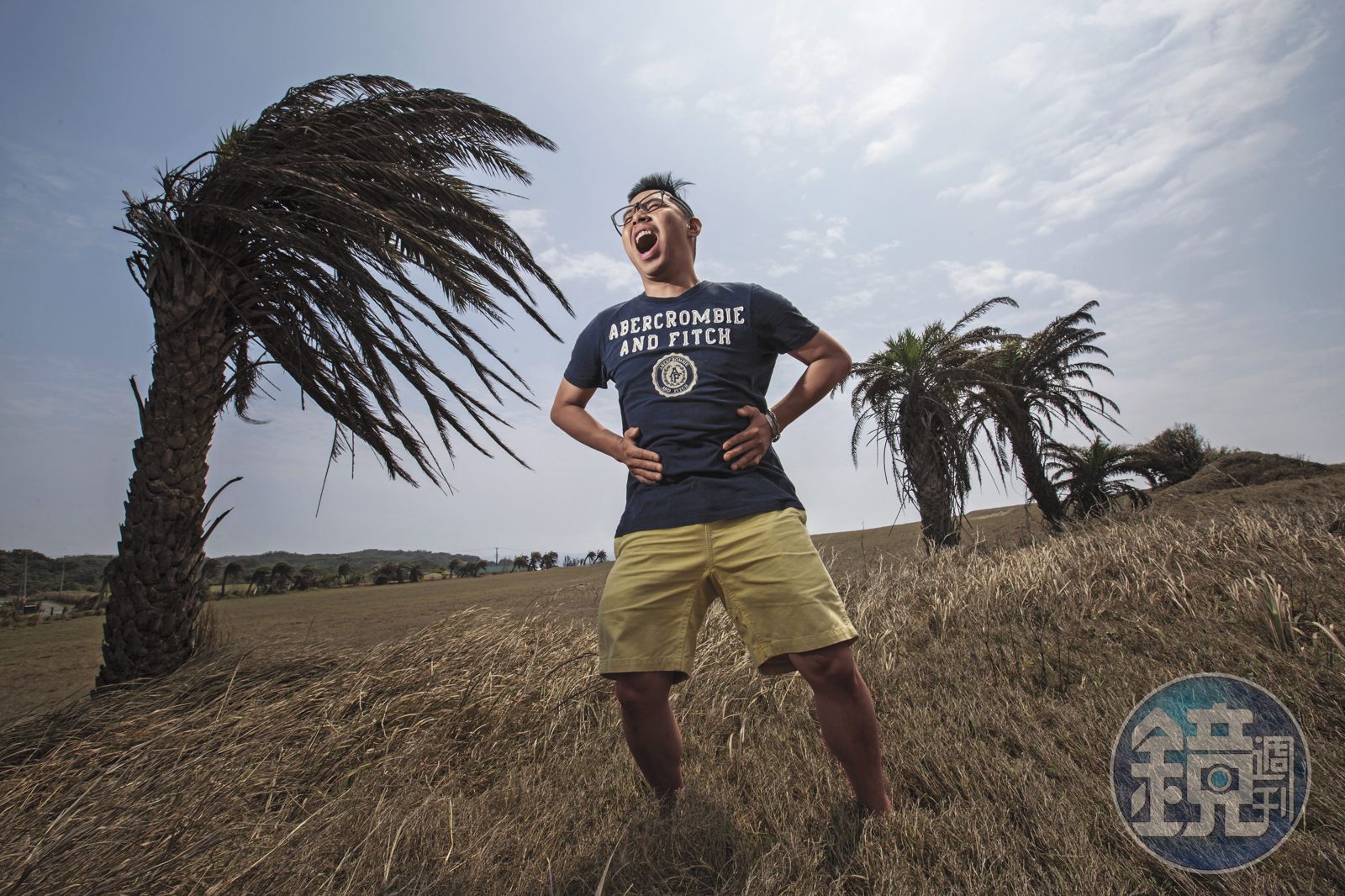 南部豔陽再狂也沒他狂。瘋狂的第一印象,除了奇快的步調,還有妥瑞症的不自主抽搐,「我12歲,趴在教室桌上睡覺,突然抖一下,就像這樣…」他誇大演出抽搐的動作,「幹!超累的,哈哈哈,很像神經病。」後來寫字寫一寫也開始抖,頻率越來越高,「有人說你被鬼附身,那時候我以為我得腦瘤。」