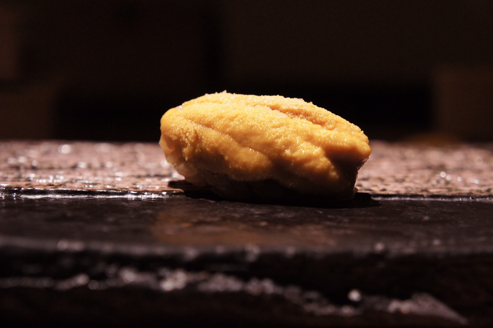 整個過程不過幾秒鐘,佐藤博之就把指間的藝術品送來,我直接用手指拿起,整貫入口,食材在嘴裡勻化,全面啓動由味蕾到大腦的愉悅模式。