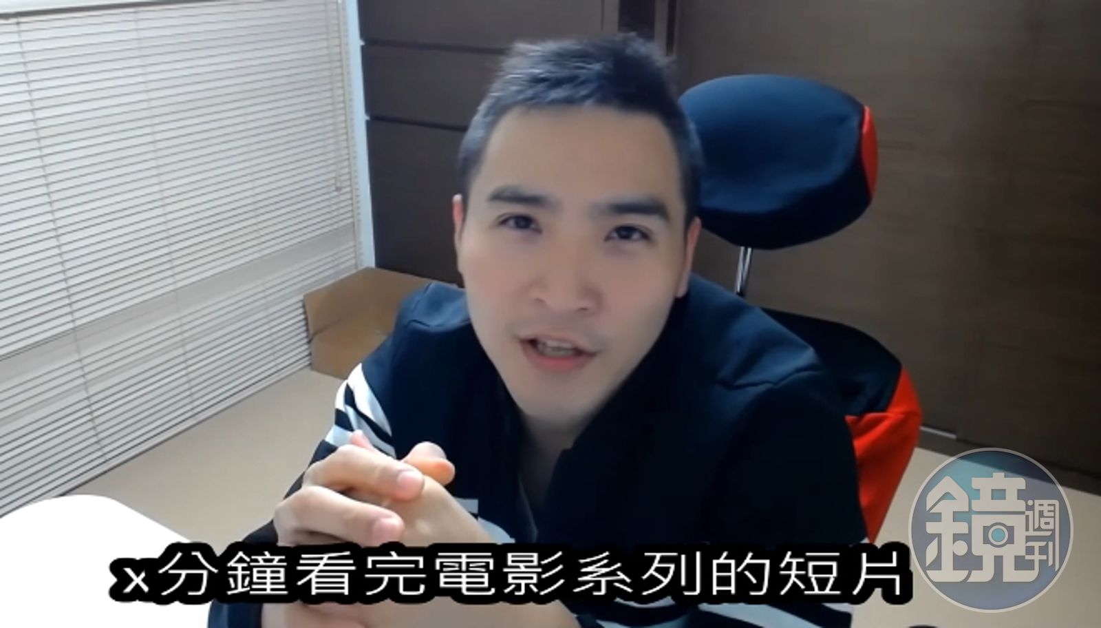 谷阿莫聲稱是基於「網路著作權合理使用」來製作「X分鐘看完電影」系列短片。(截自YouTube)發布時間:2017.04.25 19:55 臺北時間