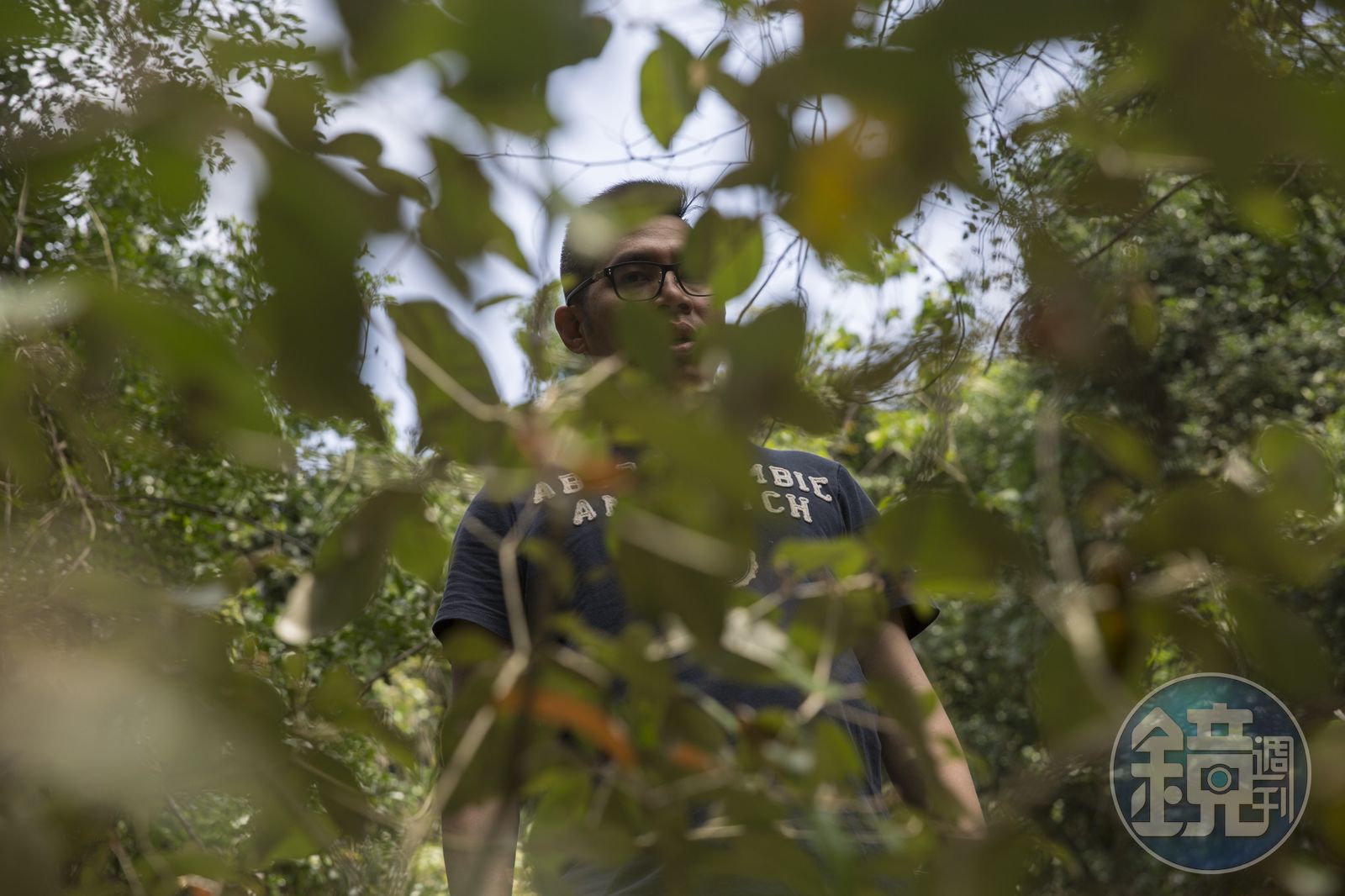 吳尚洋在社頂公園內尋找野花。發布時間:2017.04.25 19:03 臺北時間