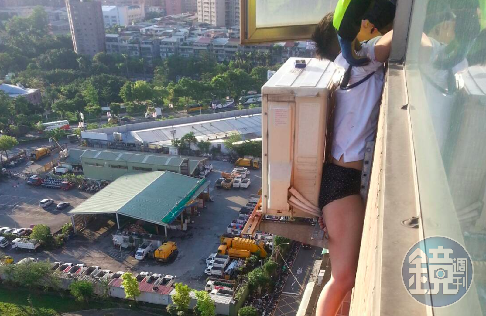 今日凌晨6時許,永和區保順路一處18樓的社區民宅突然傳出爭吵聲,隨後一名女子推開窗戶,作勢往外跳,或許是她命大,雖然已跳出窗外,但女子卡在冷氣和外牆之間動彈不得,清晨路過運動的民眾見狀,立即通報警消處理。