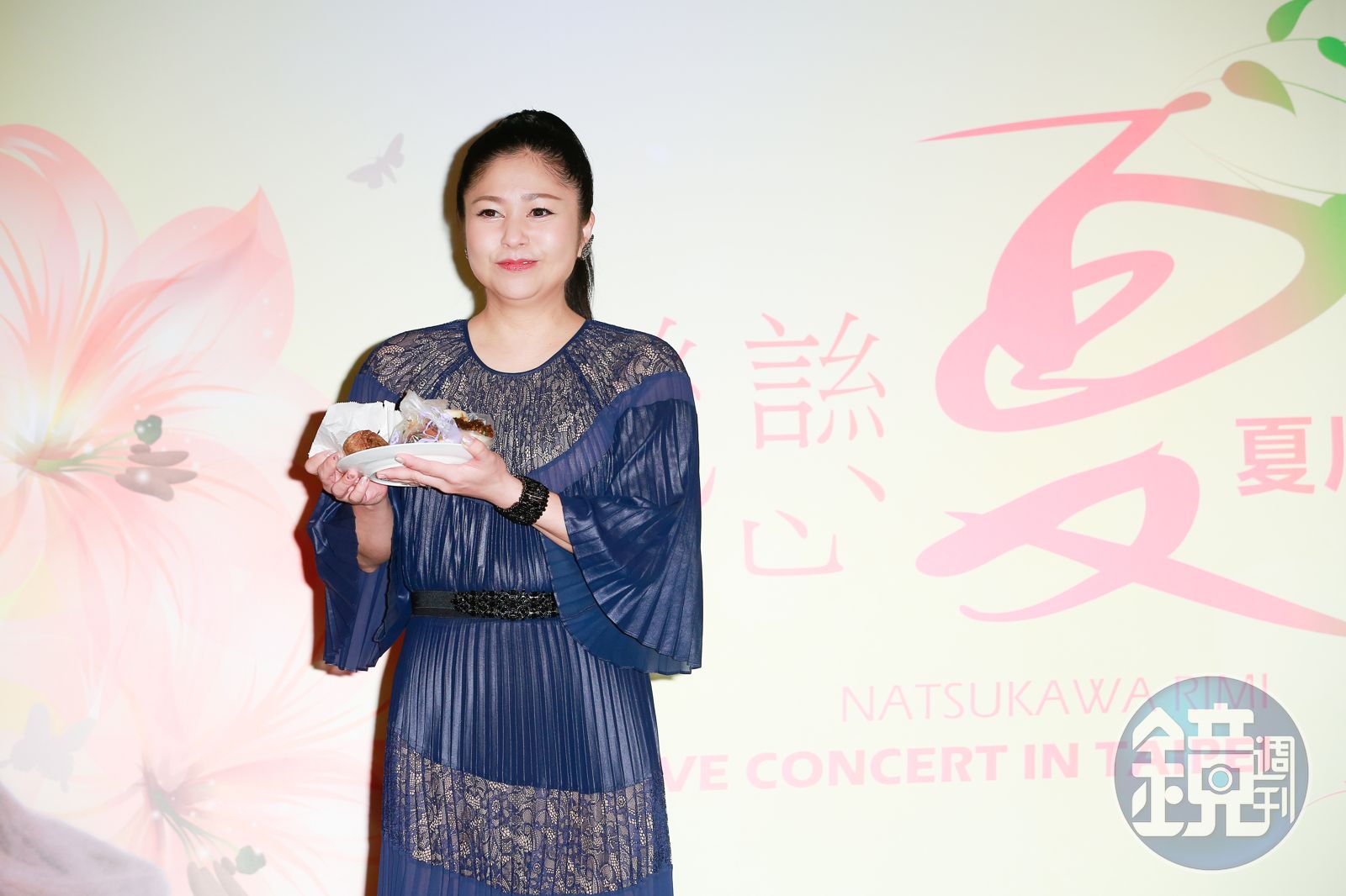 2009年與鼓手老公玉木正昭結婚,也升格當了媽媽,對於即將到來的母親節,夏川里美表示會感謝將自己養育成長的媽媽,去年收到寶貝兒子親手畫的畫像,今年也會一起溫馨地度過母親節。昨天逛士林夜市時,夏川里美特地買了時下流行的指尖陀螺送給兒子,還甜蜜透露老公不只會在特定節日送禮物,平常也時不時地會買禮物製造驚喜,讓她嬌羞地說:「嫁了個好老公。」