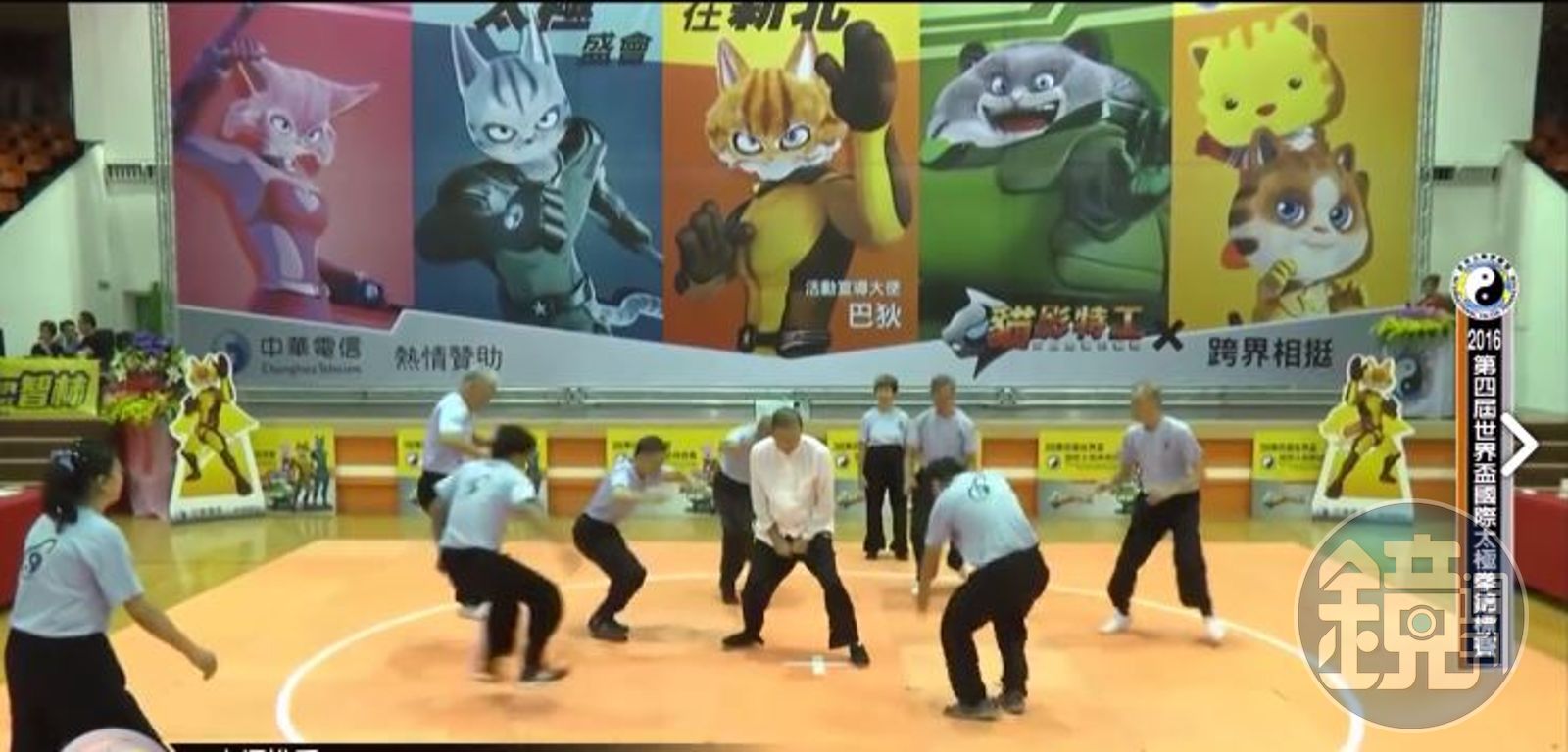 大師凝勁一發,將排成一排的示範人員全數震開。去年新北市舉辦「2016年第四屆世界盃國際太極拳錦標賽」,比賽中有一段名家表演,邀請台灣太極大師戴廷龍負責演繹「太極凌空勁」,只見戴廷龍氣定神閒、凝勁一發,一排示範人員竟凌空震飛、跌跤,大師一發功也讓網友見了嘖嘖稱奇。