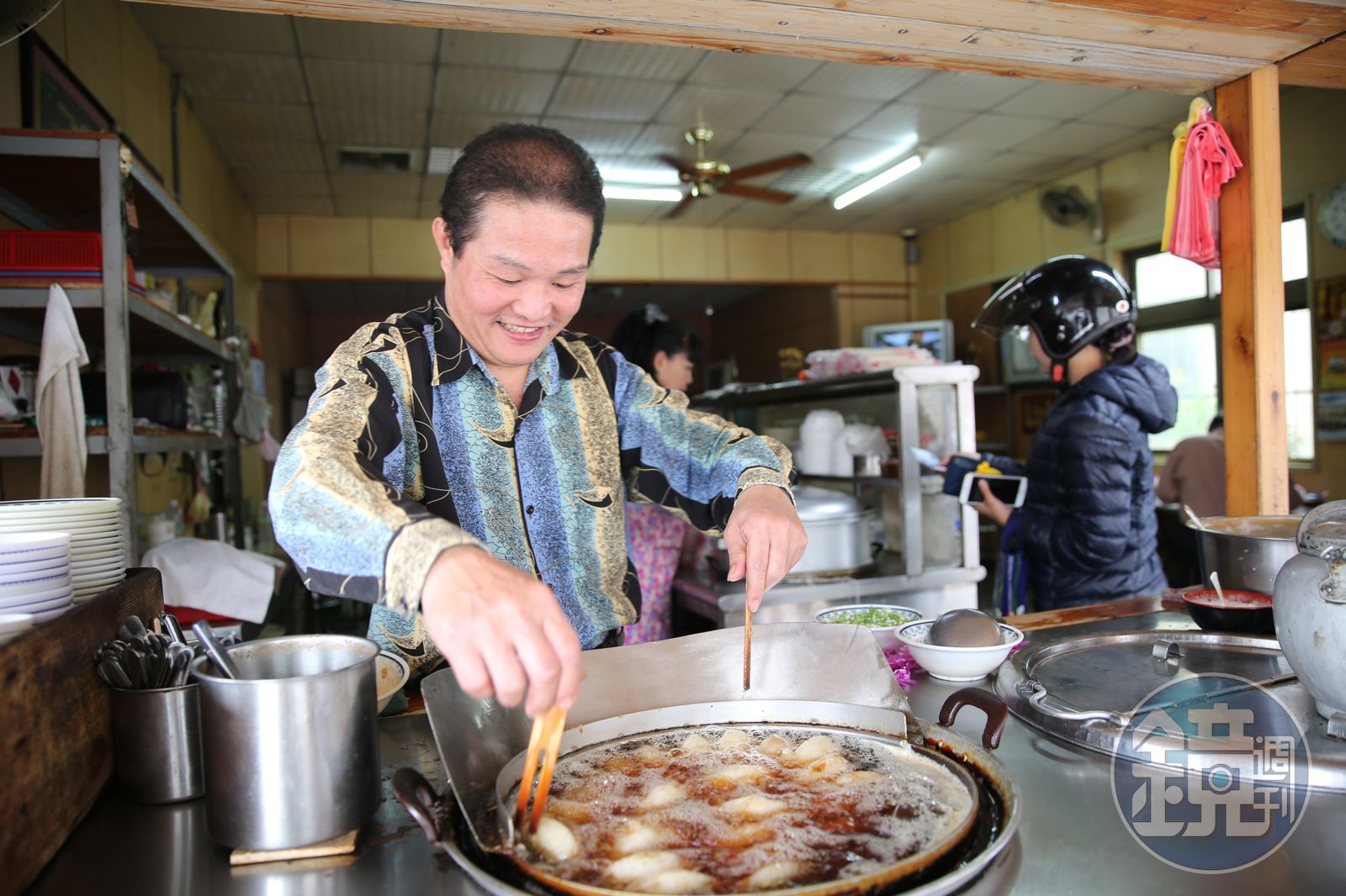 程于誠說:「油溫不可以太高,鍋子得小一點,這樣我才能每個都照顧到,像照顧自己兒子一樣。」看著他的手不時放入新的肉圓,又在另一頭不斷為肉圓翻面,規律得彷彿有自己的SOP,確保肉圓外皮不會因油溫過高或泡得太久而變得太硬。