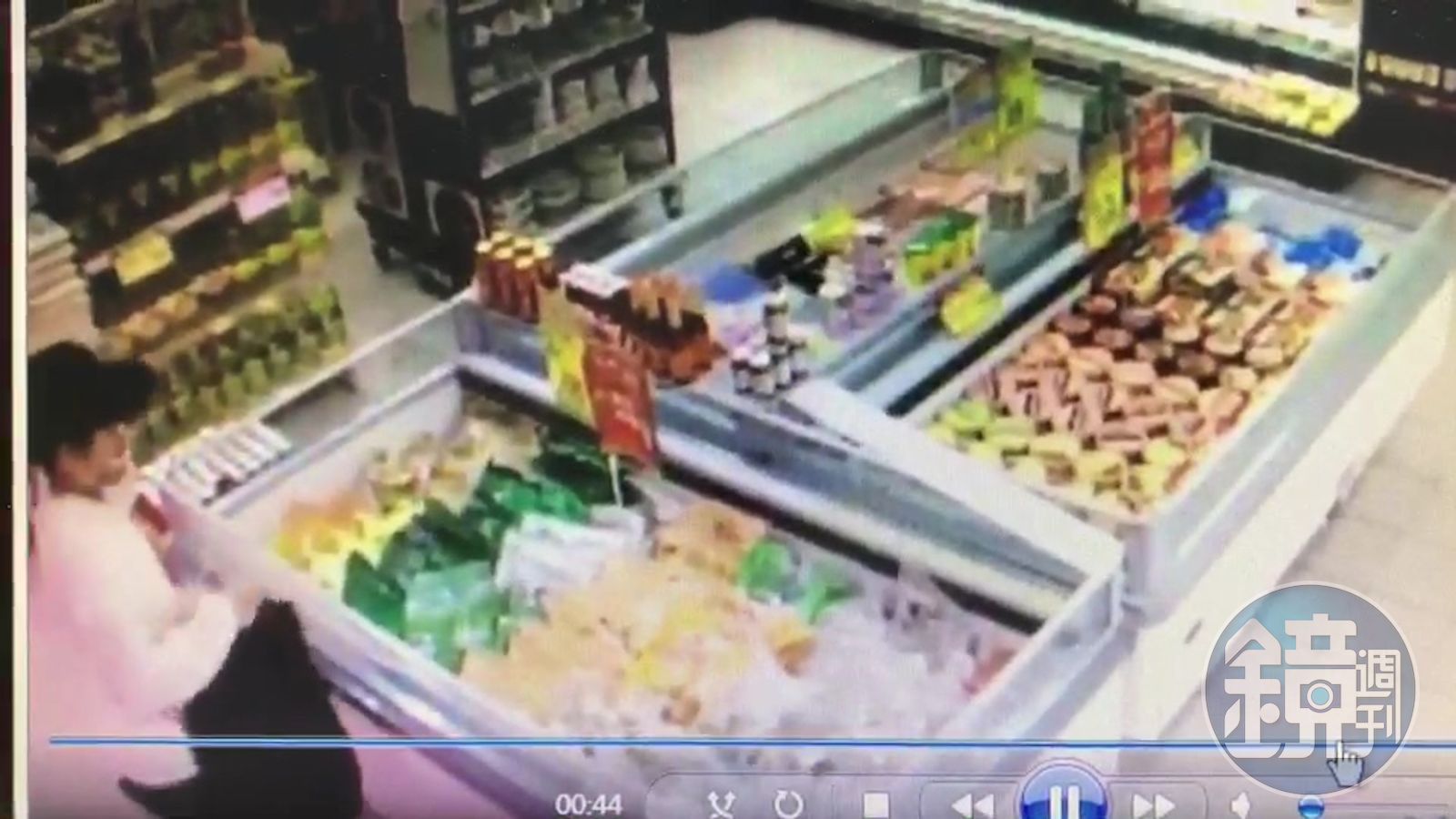 隨後吳女一直站在冰櫃旁,手上拿了2包粽子,一下又放回去,精挑細選,十足的買貨人架式,沒想到她居然趁旁人沒注意,立刻將手上的冰凍粽子和櫻桃全部塞進隨身包,手法老練,只是這一切早已被她身後的監視器拍了下來。