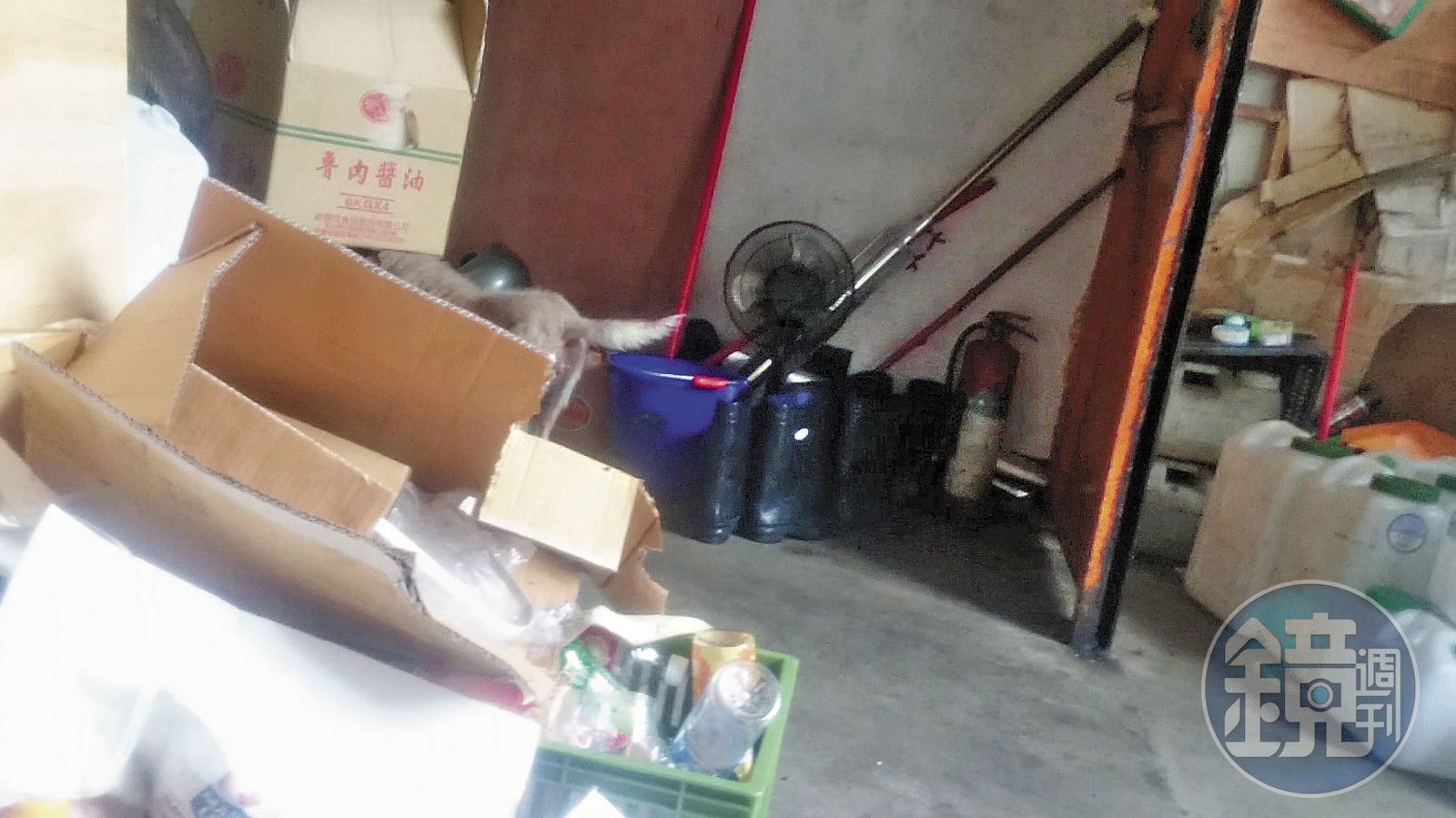 冠軍內部的環境更是髒亂,紙箱、木板和雜物隨意堆疊,地板上還有多個油桶,人一走過便有蒼蠅飛舞,牆壁上更是污漬斑斑,難以想像許多人餐桌上香味四溢、香嫩多汁的燒肉大餐是出自此種環境。