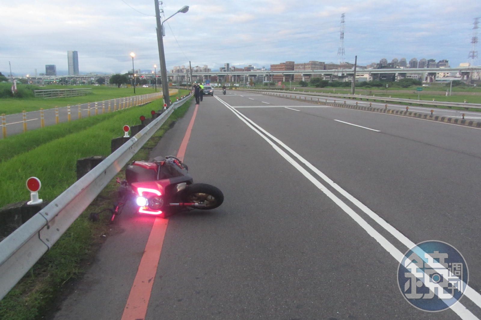 今日清晨4時許,路過民眾發現陳男倒臥在血泊之中,連疏洪道的草地都被染紅,20公尺外還有改裝的BWS機車和安全帽散落一地,民眾連續叫喚發現陳男毫無反應連忙到疏洪道的臨檢點報案,警消緊急送醫後仍宣告不治。