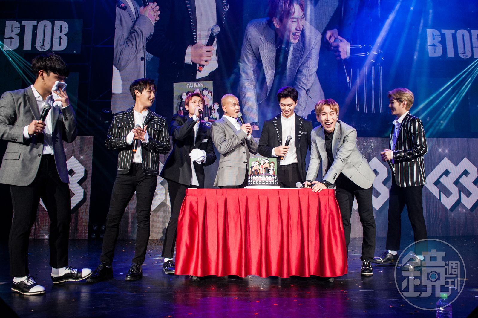 對於台灣粉絲們排字、舉手幅等不斷在台下應援的行動,BTOB除在台上表達感動之意,還誠意十足多次走下台送花,與觀眾近距離接觸。為慶祝他們成軍五週年,台灣粉絲準備可愛CUTE版人物造型蛋糕,讓7位團員驚喜不已,只能嘴甜喊話:「我們很快要見面,絕對不要再等一年!」而請團員們各自發表感言時,星材努力把會的中文全都一股腦兒說完,當其他成員發言時,他則在一旁假裝拭淚、感動地頻點頭,表情令人噴飯。
