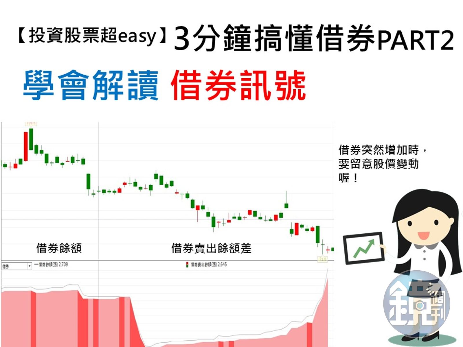 借券是法人放空的主要工具之一,對投資人而言是重要籌碼訊號。我國證交所為了讓投資人能更清楚借券變化,也特別編製多個借券資訊,包括最重要的二個資訊:借券餘額(表示潛在賣壓)及借券賣出餘額(已拿來放空的借券數量,代表已經消化掉的賣壓)。 至於該怎麼輕鬆解讀借券資訊?以下10張圖卡告訴你!