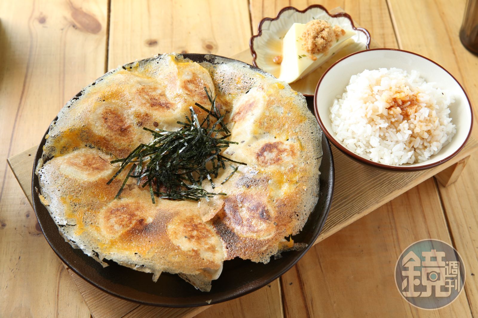 招牌「芝士煎餃」煎出「恰恰」金黃色澤,賣相是日式冰花煎餃,內餡則是再熟悉不過的台式水餃,薄薄的餃子皮包入豬絞肉、高麗菜絲和用來提味的米酒,配料不複雜,卻忍不住一顆接一顆送進嘴裡。「原味煎餃」還會附上嘉義老牌醬油「萬金牌正蔭油」,更添古意。