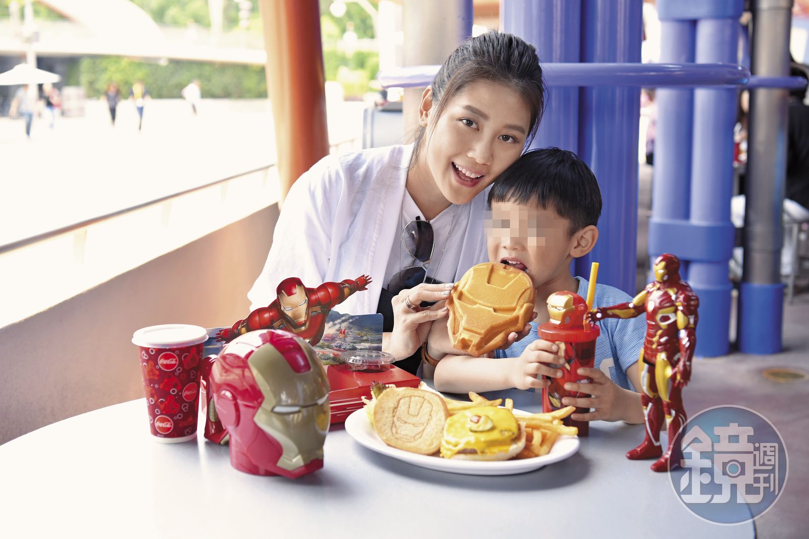 嚴立婷帶著兒子,還參加了高飛帶小朋友一起打太極拳的課程、上手工藝課親手製作鋼鐵人紙袋,「樂園裡的鐵甲奇俠飛行之旅,只要站在螢幕前就可以變身成鋼鐵人,還能跟鋼鐵人擊掌,兒子總共玩了四次!」