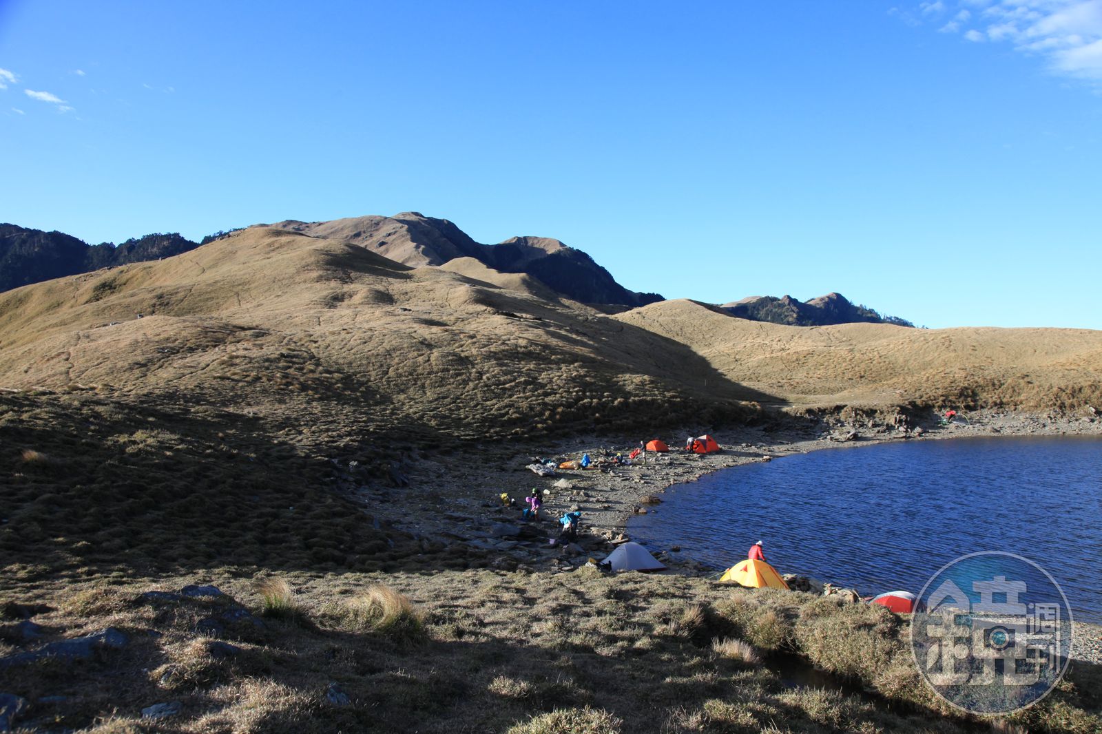 下個目標是路過而不紮營的「萬里池」,此地因為是萬里溪的源頭而得名,形似三角形,南北長約330公尺、東西寬約260公尺,這麼大的高山湖泊卻稱為池,感覺有損它的英名。