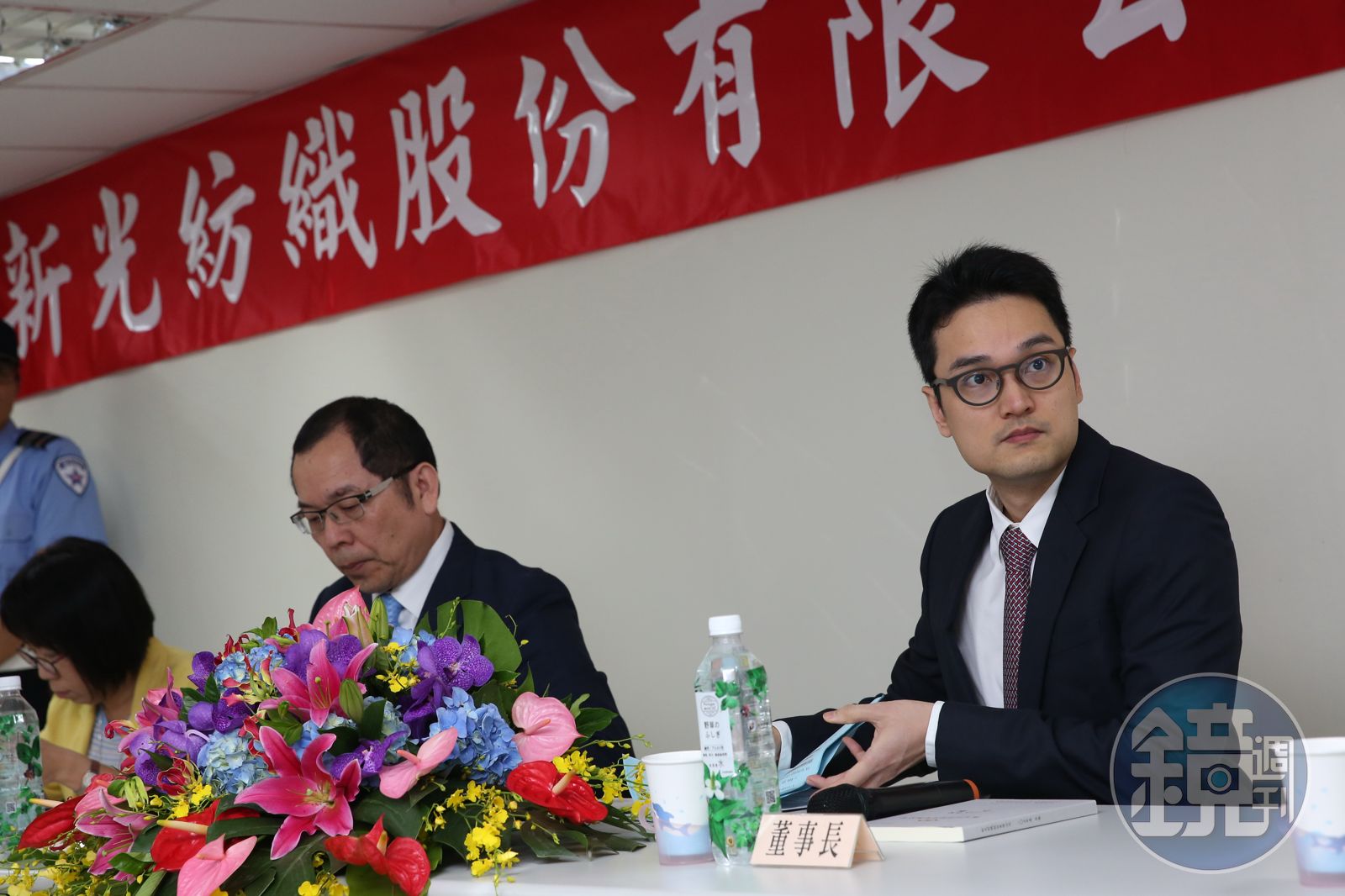新紡今天舉行董監改選,這屆董監改選,吳昕恩再度面對來自伯父吳東進的挑戰,吳昕紘、吳昕恩兄弟檔不敢大意,親自坐鎮督軍,吳東進原先要進入股東會現場,卻一看到媒體在場,再度立刻閃人,只留下祕書在現場。