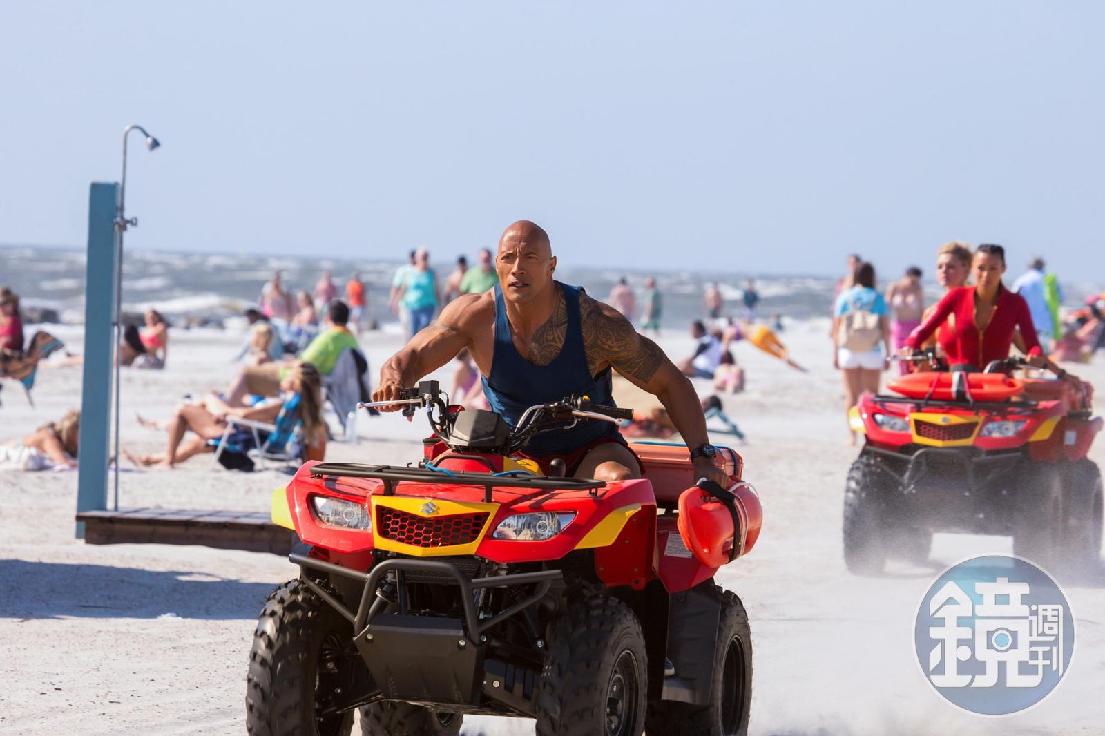 當角色一再取笑對方老梗(cheesy)、俗氣(tacky),當隊長巨石強森認真地闡述任務,菜鳥柴克艾福隆不可置信地大呼,「你講的根本是娛樂性高,但劇情超扯的電視影集嘛!」,它們一方面是《海灘救護隊》自我調侃的後設趣味,一方面也是電影的自我定調。