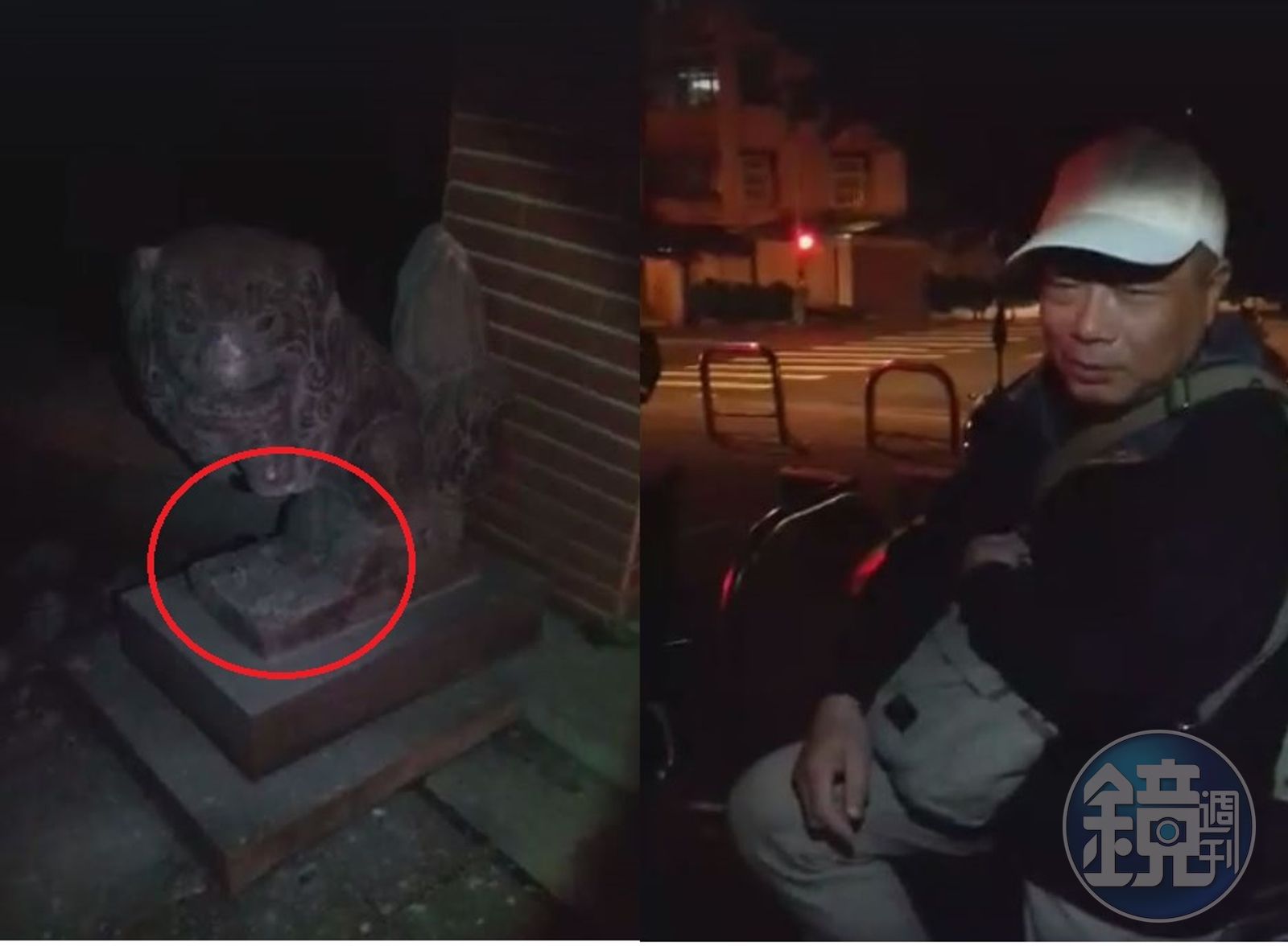 「為了表現我們是守法的好公民,就隨手幫中華民國政府清理日本殖民時代遺留下來的垃圾。」女子邱晉芛透過手機直播,告訴全國臉書用戶自己和李承龍2人,在晚間8點左右,以鐵鎚摧毀了日據時代遺留下來2尊石狛犬的前腳。
