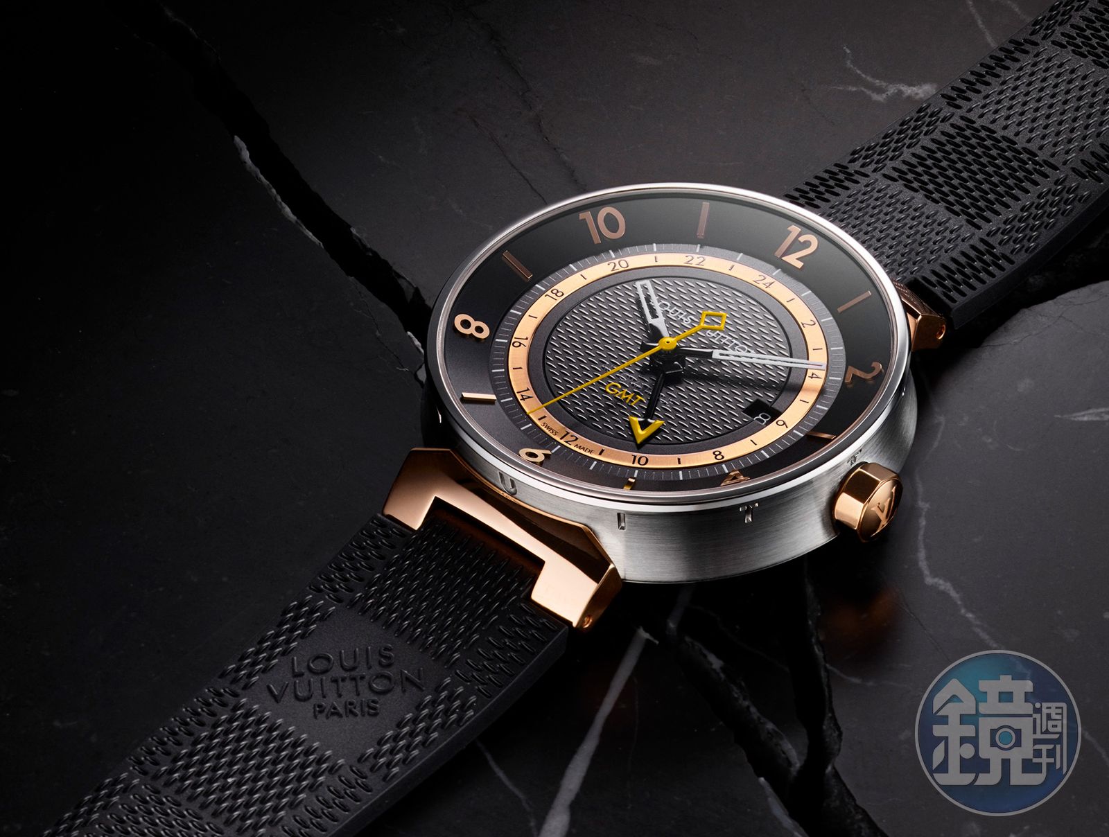 這次LV發表的全新產品中,我覺得最厲害的還是它的快拆錶帶裝置,操作上便不便利,還沒實際接觸前並不知道,新聞稿內只說明這是研發部門製作的專利設計,採用高碳含量的複合材料,特性已接近鈦金屬。為什麼說它厲害呢?因為這次LV將更多品牌的精品色彩帶入手錶製作中,包括經典Damier和Monogram帆布到皮件產品系列採用的皮革,這次都成了錶帶材質選擇,光這點在「個人風格化」這點,比起傳統的鐘錶品牌就來得更有優勢。