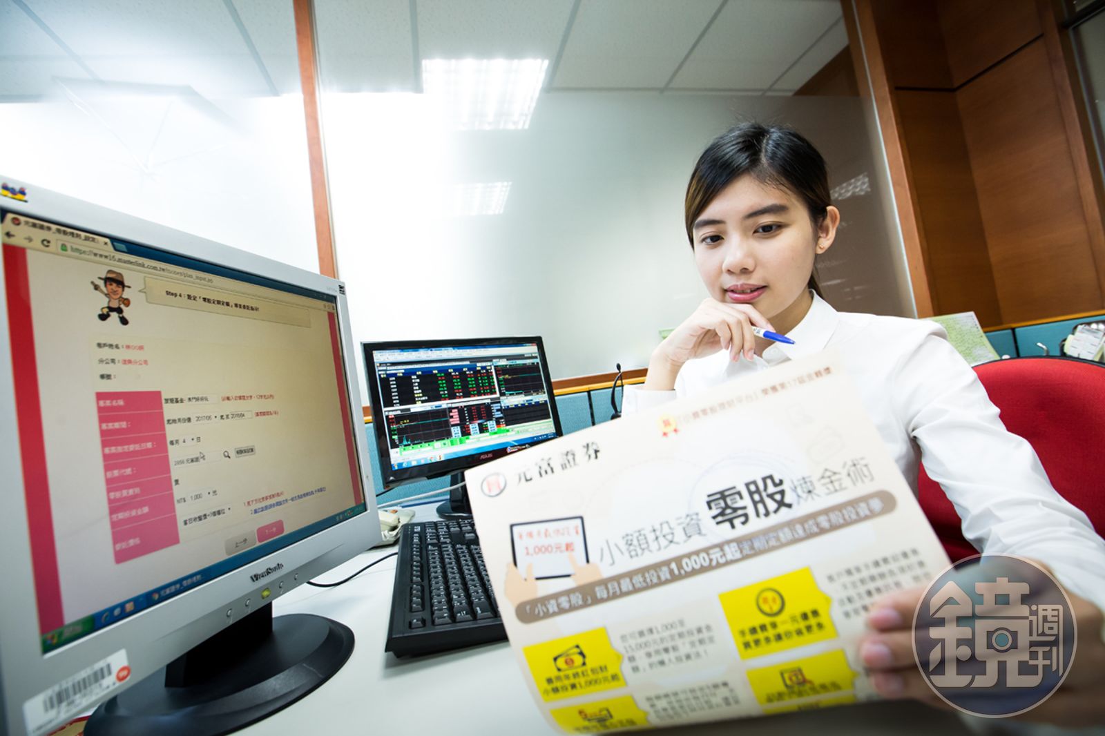 目前只有元富證券開辦定期定額買零股理財平台,每月定期定額1000元起,投資標的上千檔,包括上市櫃股票與ETF,選擇相當多。