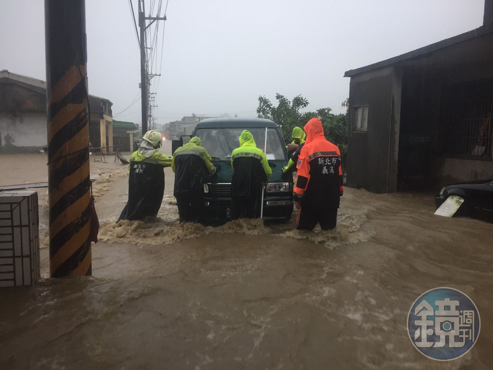 另,三芝埔頭一帶也有1名8旬獨居老婦,家裡多處積淹水,消防人員欲將其帶往安全地方避難,老婦卻覺得自己「沒有受困」,寧可待在家中,幸好消防及時聯繫上老婦兒子,才由老婦家人安然帶走老婦。