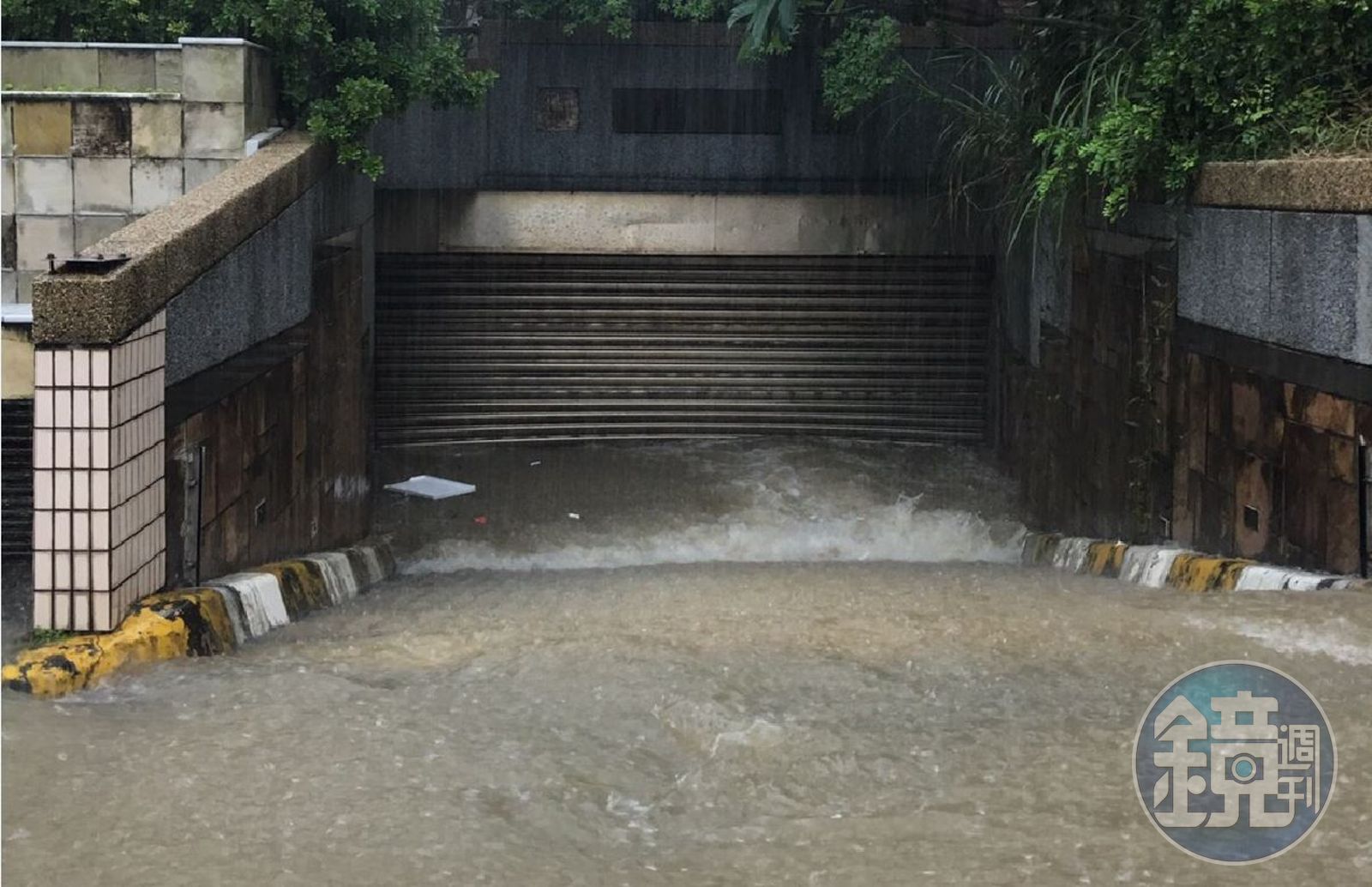 家住八里的陳先生投訴,因為八里地區下水道有工程施工,導致雨水沒有地方宣洩。陳先生清晨5點被鄰居叫醒,大家忙著把車開出車庫,因為整個地下室已經遭水淹沒,財產損失嚴重。