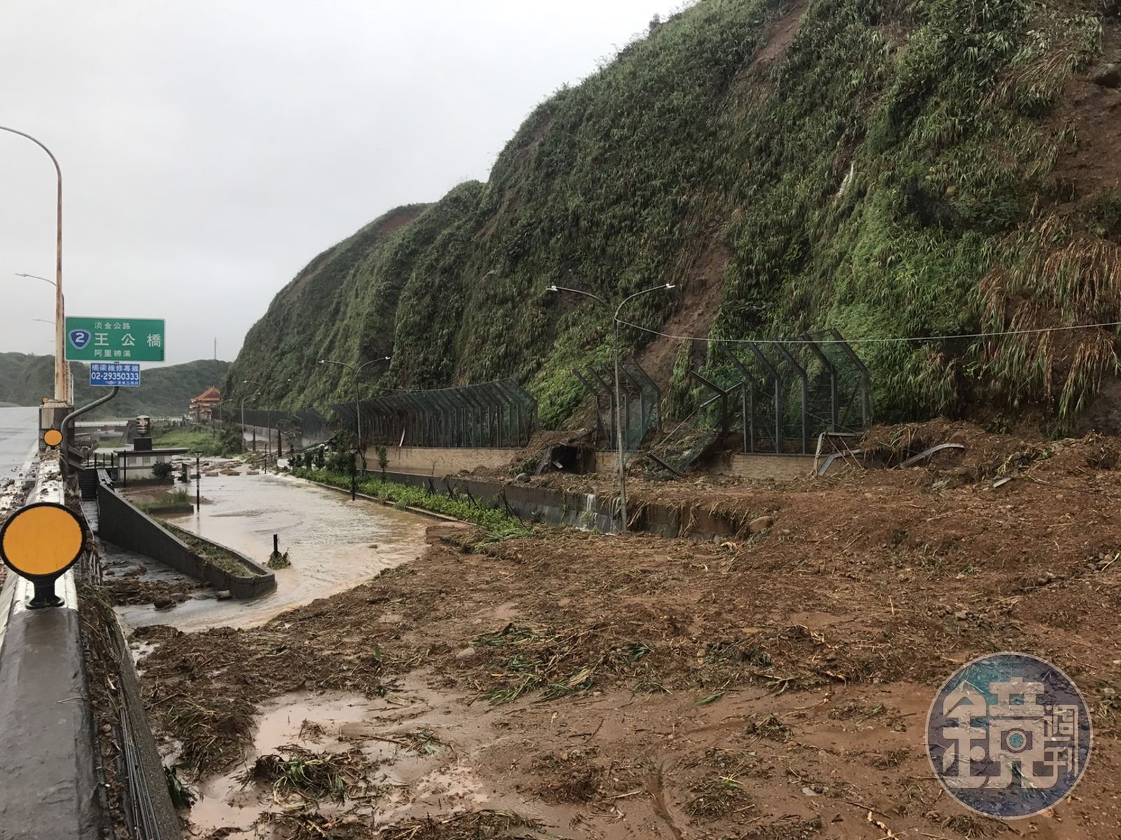 【水淹北海岸】雨彈狂襲北北基 淡金公路擋土柵欄遭毀