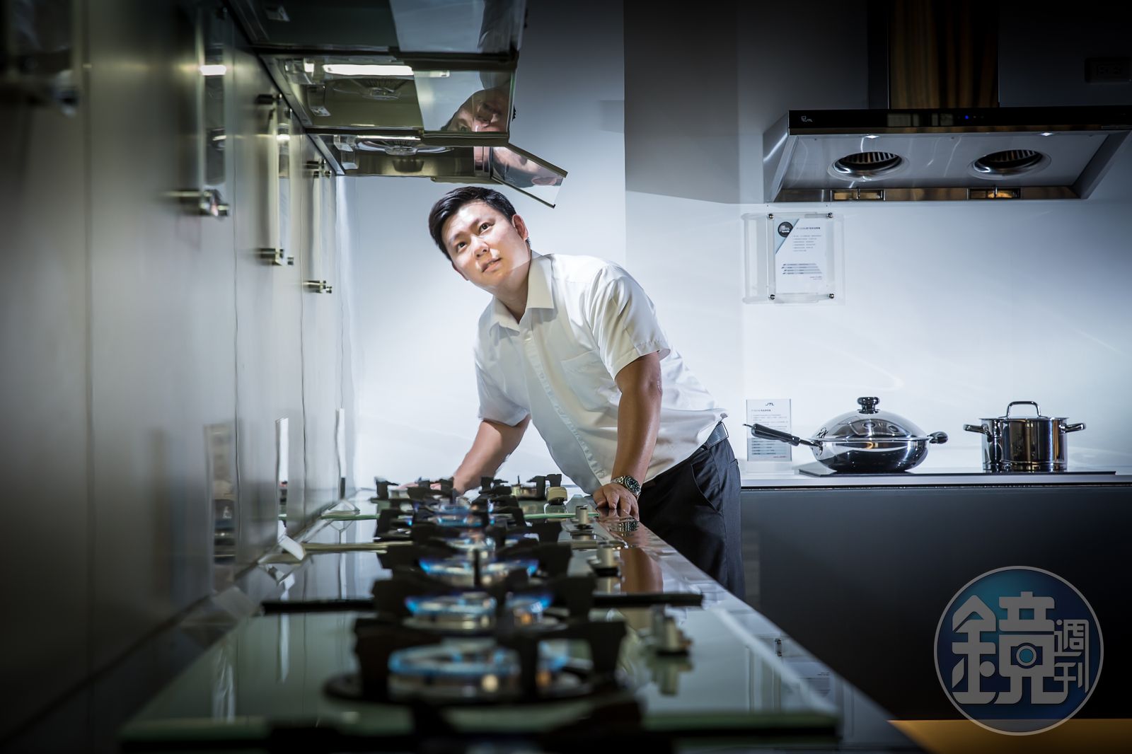 侯劭諺花了3年研發出驚豔業界的「智能連動烹飪組」,他解釋,「概念來自消費者開火時,常忘記打開排油煙機,所以研發出能自動偵測瓦斯爐火,進而啟動、調節抽風大小的排油煙機。」不只如此,爐具方面,也推出全台第1個自製的觸控式瓦斯爐,光這2項技術,就投資600萬元。