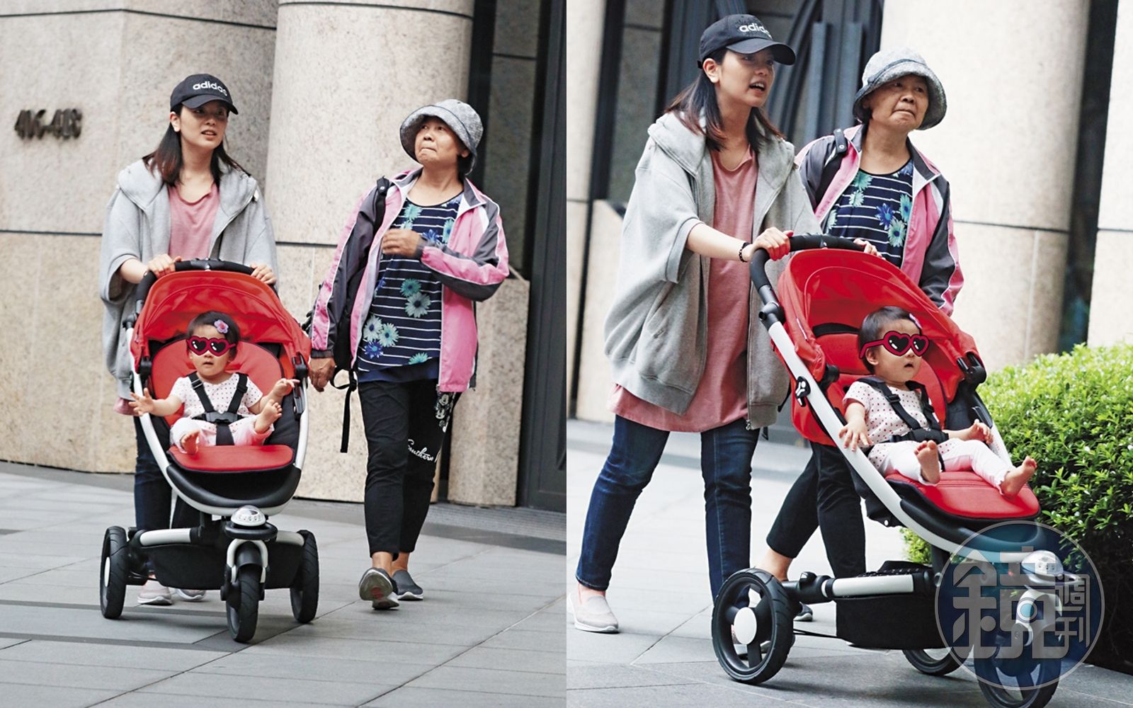 前年底仔仔和喻虹淵突然公布登記結婚消息,震驚演藝圈,隔年八月寶貝女兒出生,轉眼間已經10個月大,上週一下午,戴著帽子一身輕便的喻虹淵,和喻母推著售價2萬多元的法國品牌嬰兒車帶女兒外出散步,「小仔仔」坐在嬰兒車上手舞足蹈,大眼、挺鼻和小嘴,長的幾乎和仔仔如出一轍,頭髮也相當茂密,不過產後已經快一年的喻虹淵,身型看起來還是略微圓潤,穿著寬鬆T恤和連帽外套,完全察覺不出是個星媽。