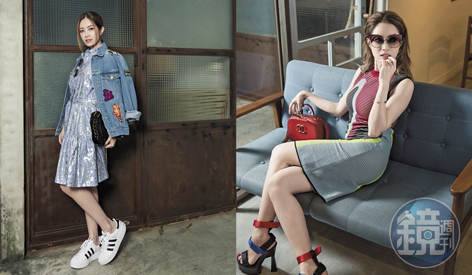 和閨密們相約一起外出踏青、拍照時,我就會特別這樣打扮,走一種絕對不能輸的路線,這樣才能確保每張照片出來時的自己,都是美美的;因為洋裝太淑女,所以我加件丹寧外套,多點個性,也顯出反差。我只要穿裙子,即使是長裙,也都會穿安全褲,不然萬一曝光怎麼辦?