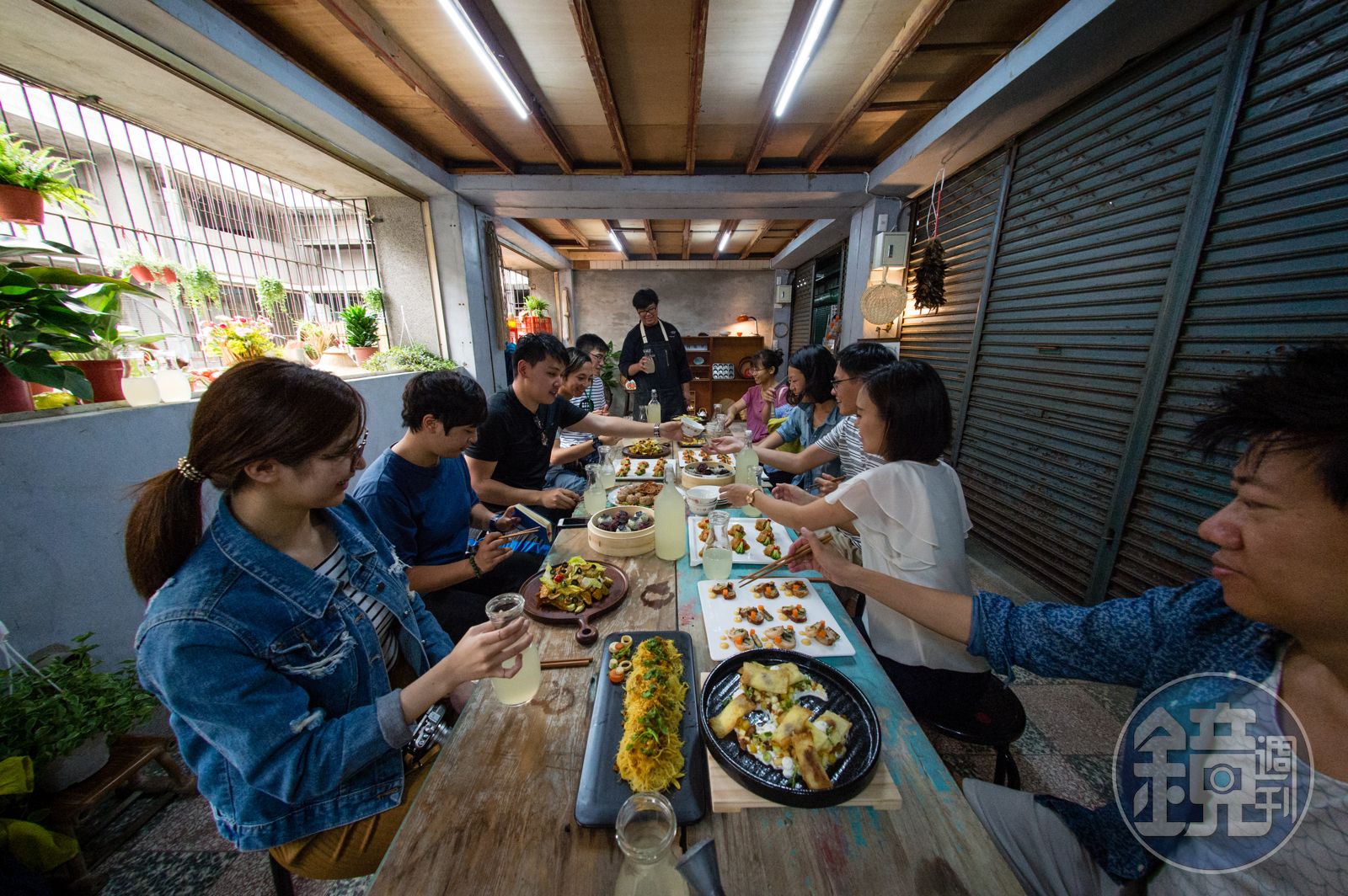 空間裡還有各種台灣老件,從櫃子到舊式門牌,新竹歷史被張開在這頂多10坪大的空間裏頭。而屋子正中央的一張長桌上,擺滿了各種料理,食物還飄著熱氣。