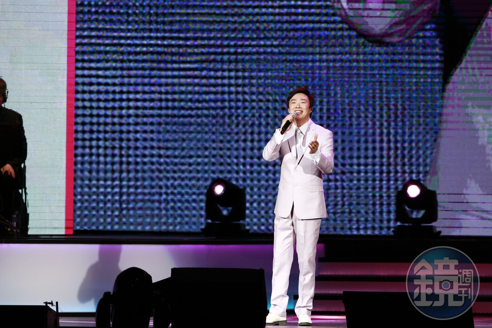 歌壇長青樹費玉清3年未開演唱會,台北小巨蛋首次開唱就連唱4場,魅力無法擋!10日首場演唱會觀眾全場滿座支持,讓費玉清非常開心。以一身粉紫色西裝登場的小哥費玉清一開口就讓全場觀眾聽得如癡如醉。小哥開心與大家問候:「大家好久不見,今天好開心看見大家,我是費玉清!」全場報以掌聲回應。