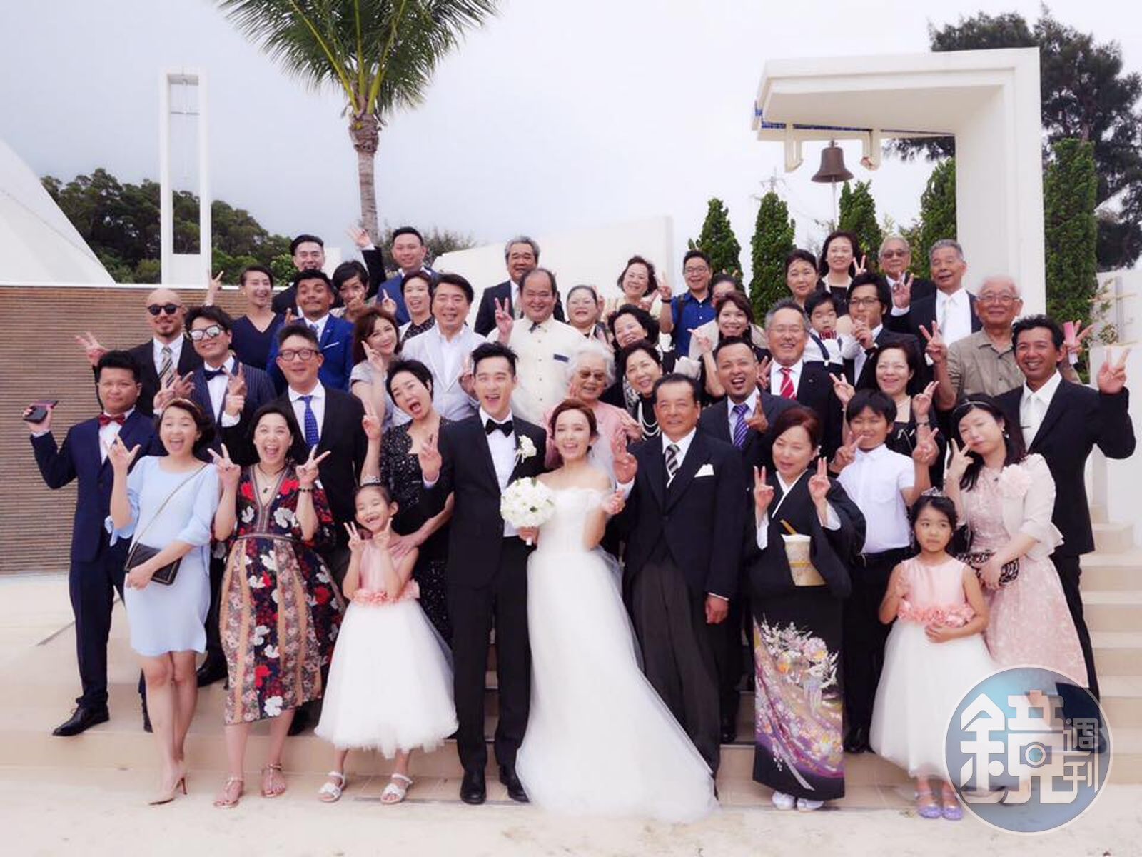 愛紗11日晚間於臉書po出親友團大合照,一行人開心比YA,2人將於17日在台北寒舍艾美辦婚宴,屆時將有更多演藝圈好友現身祝賀。 愛紗挽著父親的手步入教堂,建築用大片玻璃引進自然陽光,讓場面更為夢幻,周洺甫早在前年就跟著愛紗學日文,為了在婚禮上致詞,特別再苦練一個多月,非常有心。 婚禮上愛紗笑容滿面,到晚宴時感性向父母道謝:「謝謝你們當時總是聽我訴說心事。做我最堅強的後盾。回沖繩的時間更少了,讓你們覺得寂寞,很抱歉。之後我會更加孝順你們,請你們更加依賴我。」