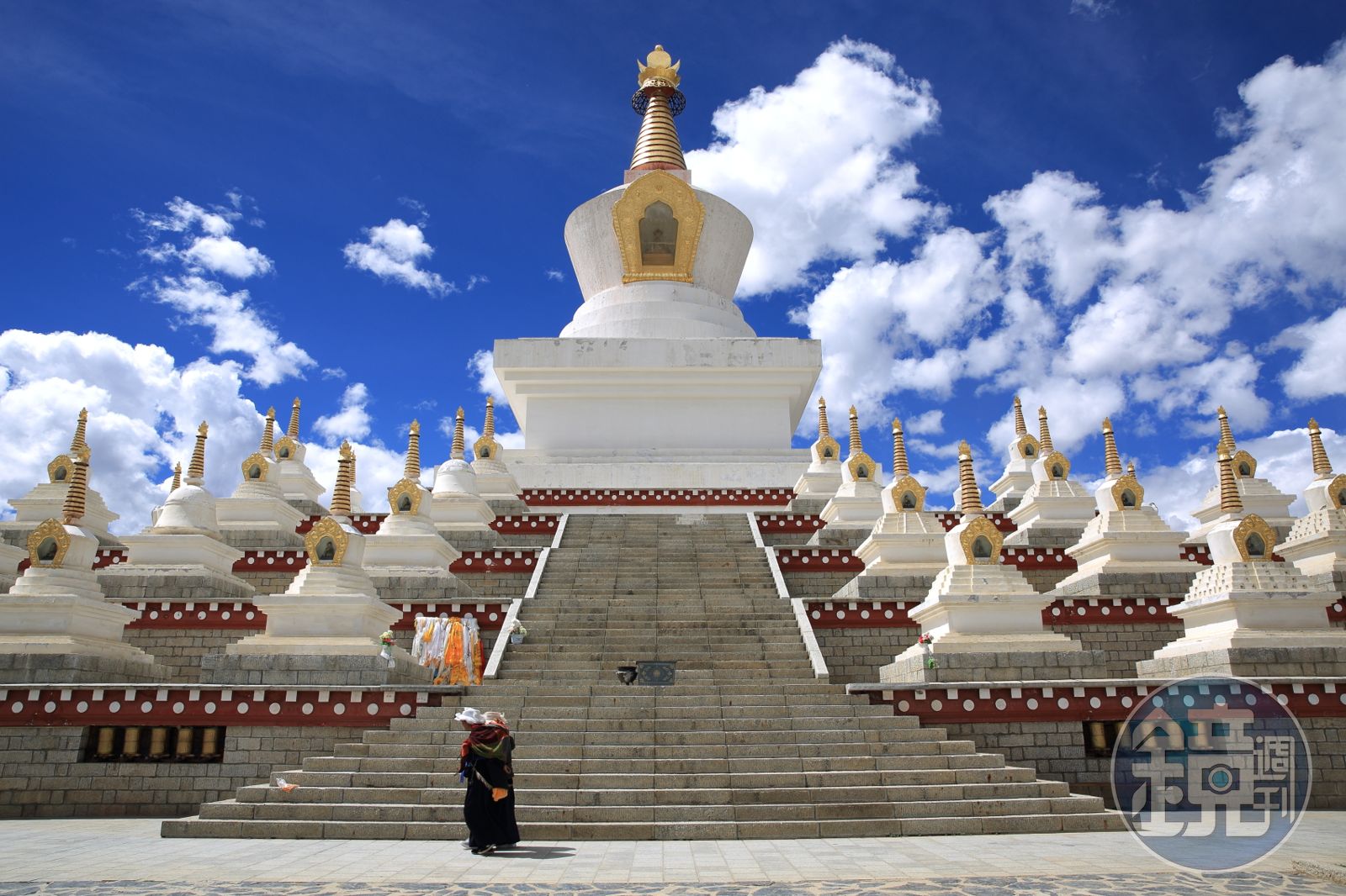 稻城地處四川西南部,海拔3,745公尺,沿著216省道,會經過稻城新地標「尊勝塔林」,又稱稻城白塔,四方形的底座,分為5層,最高層中央是高大的白塔,從上到下,共有108座小白塔,藏族人每日都會來轉經。稻城的南面,緊鄰「俄洛村」,用傳統建築手法砌成的土色藏房,與道路兩旁的青揚林交織成的風景,讓我有種置身南疆的錯覺。