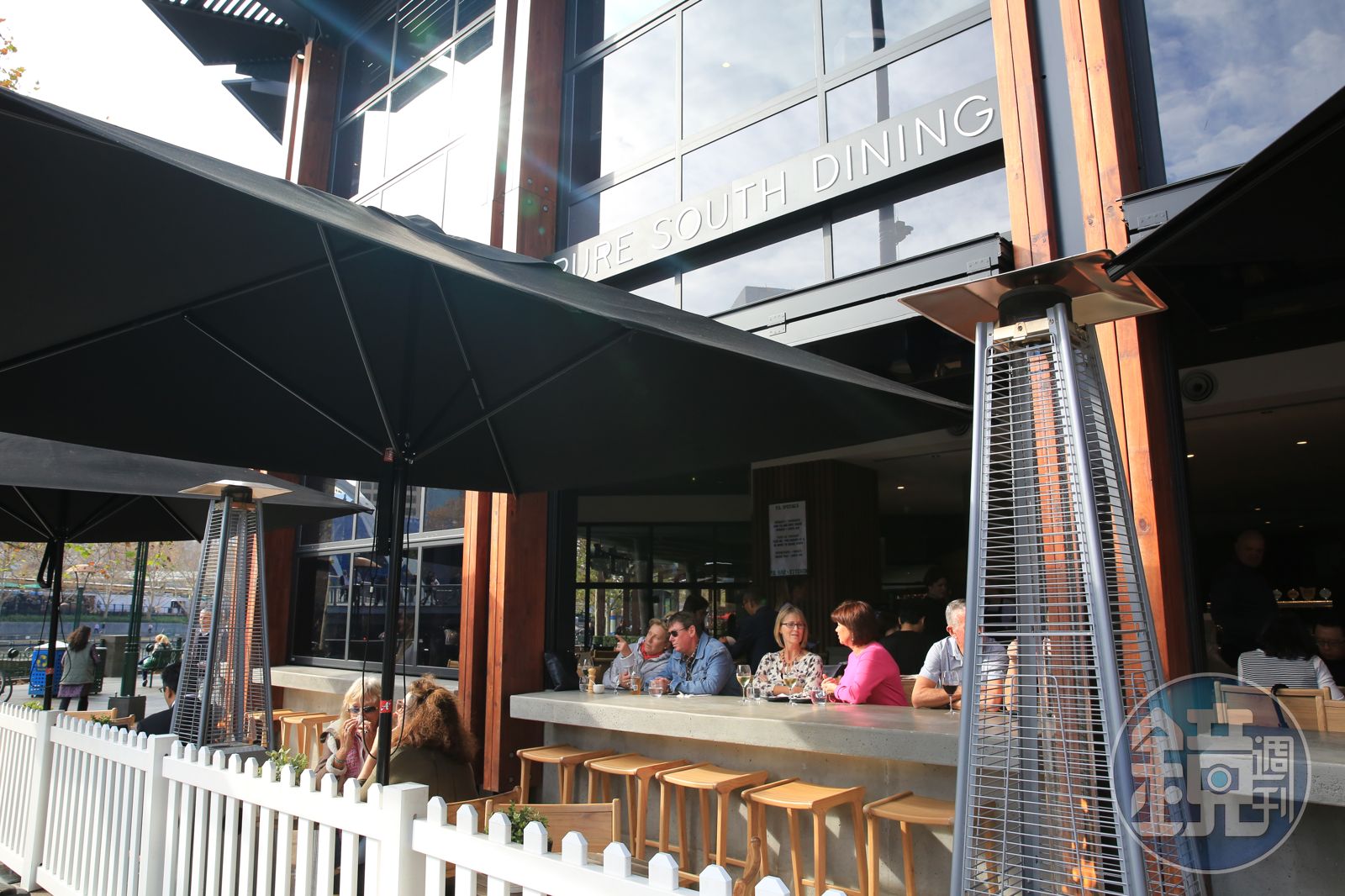 位在亞拉河南岸的「Pure South Dining」,就是一間廣受歡迎的餐廳,餐廳分成兩層,一樓是開放式廚房與酒吧,許多人一進去就自動自發坐到面對河景的景觀座位,往吧台上瞧,酒吧正忙碌地在「The Taps」打出本地產的生啤酒,只見窗邊座位幾乎人手一杯,配一顆奶味濃郁的「St Helen Lease 65」生蠔,便是莫大享受了。