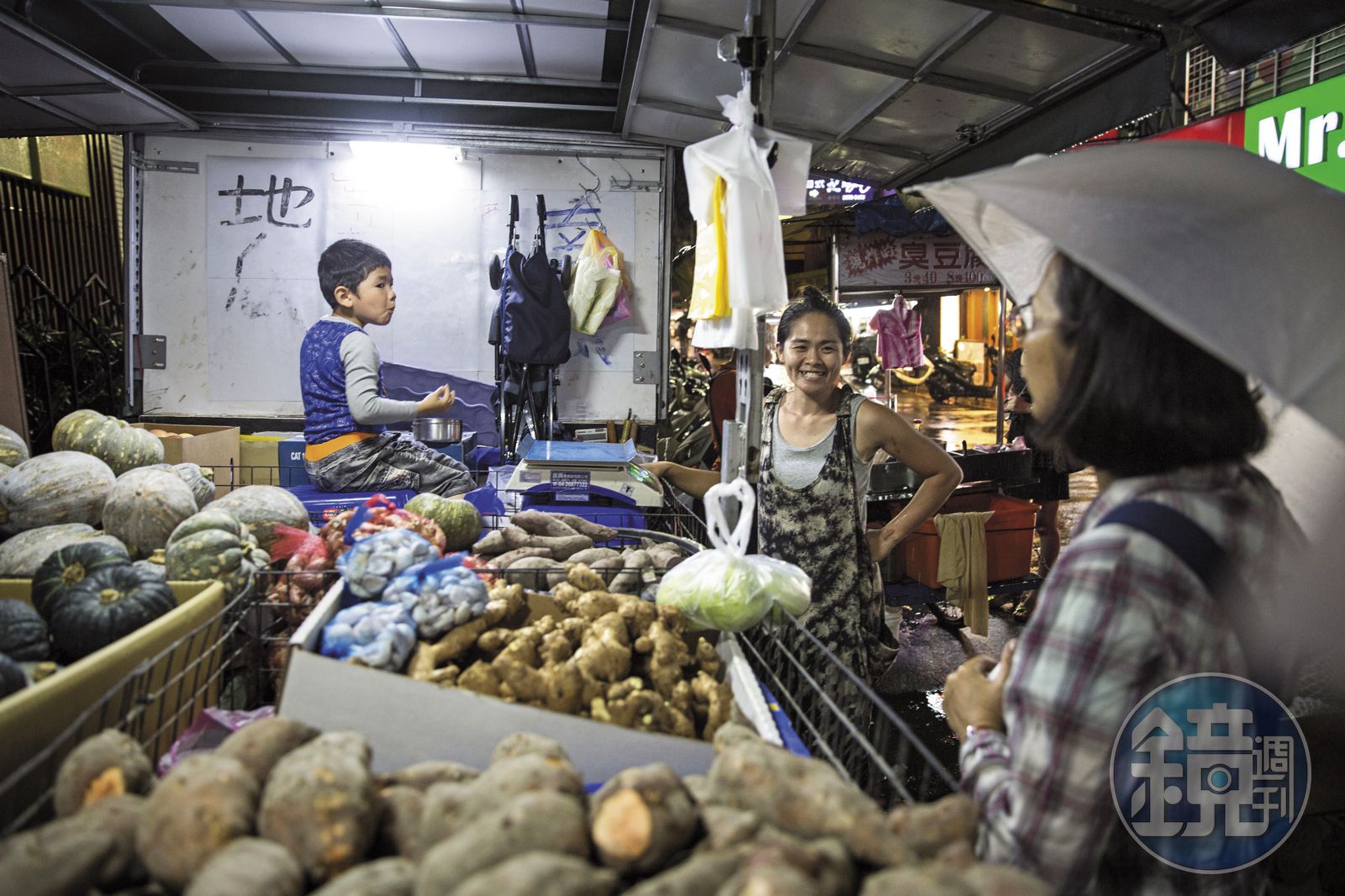 週五雨夜,我們陪他們母子三人在台北西湖市場,附近攤販好心送來自家做的熱菜給他們當晚餐,鐵盒打開,有魚有菜;打烊收攤後,到了深夜12點,對面公寓的上班族小姐不忍他們在雨中夜宿車上,邀請母子三人上樓打地鋪。左鄰右舍組成綿密網路,共同幫這位單親母親一把。