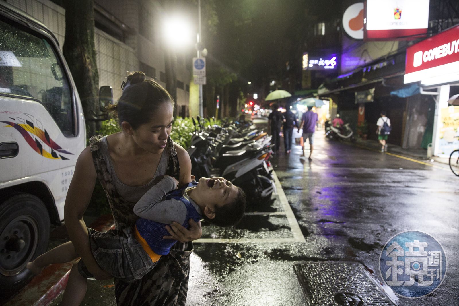 腦神經傳輸受傷,從外表看不出來,相處過才會發現,典典的認知功能與常人不太一樣,「我也搞不清楚他到底聽不聽得懂,但他很會看人臉色,知道誰對他好。但其實又不是很懂,客人買玩具、拿糖果給他,他可能就跟別人回家了。」媽媽獨自承受著照顧的沈重壓力,耐心相當驚人,有時候全身被典典用指甲捏到流血,也不願用打罵的方式教育。「我只有在有危險的時候,例如開車時他要去開車門,我會打他的手,讓他知道不可以這樣。」