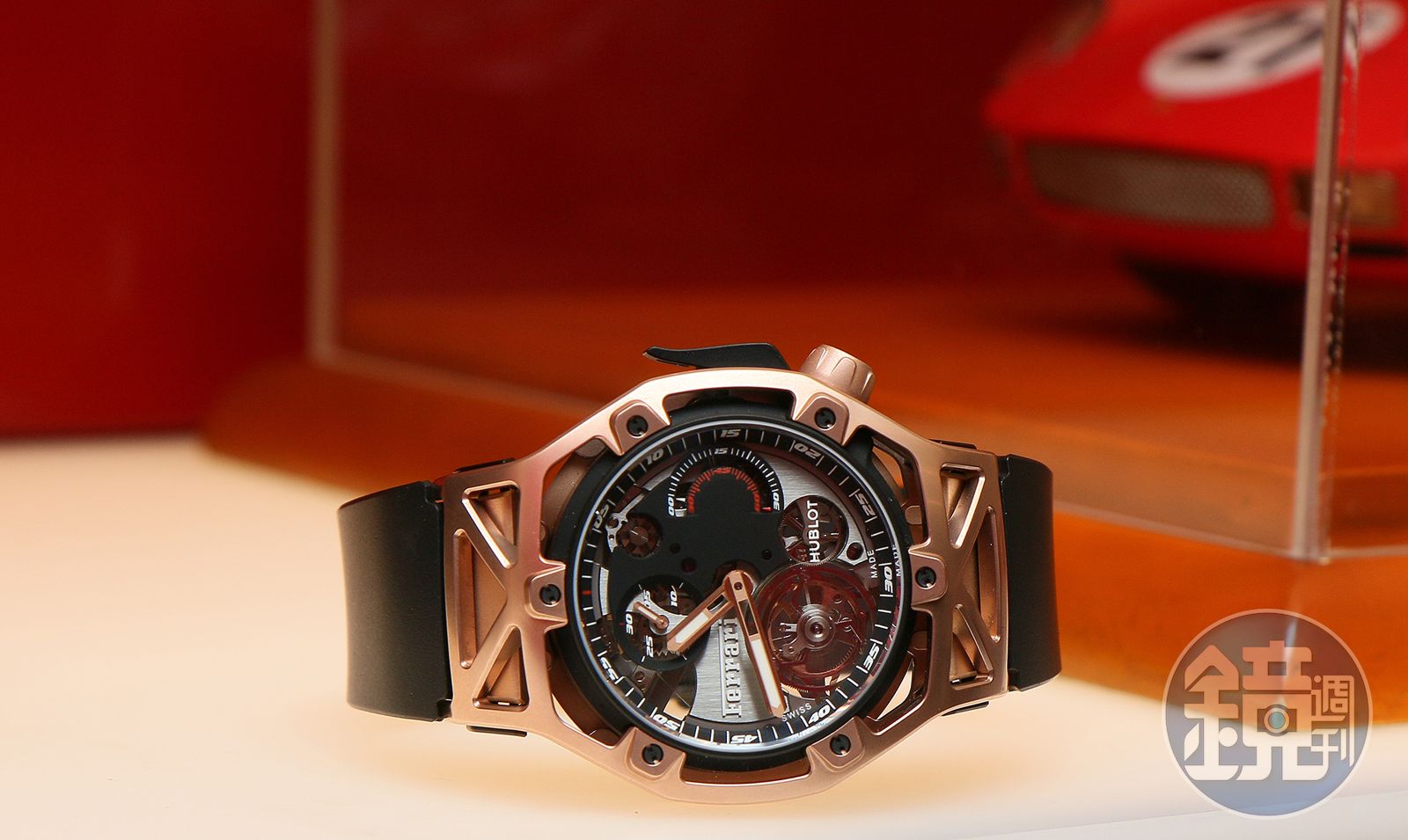 孫:這款作品除了外型與設計背景之外,其實我覺得更厲害的是它的錶殼。猶如車體骨架般的錶殼線條,這個樣子的錶殼在製程上並不好處理,我比較好奇的是它是用切削出來的?這個線條結構讓我想到了3D列印的製作方式,但細節品牌並沒有詳細說明。我覺得HUBLOT最近在這類特殊錶殼形狀上很有趣,今年另一款MP-09也是很好的例子。