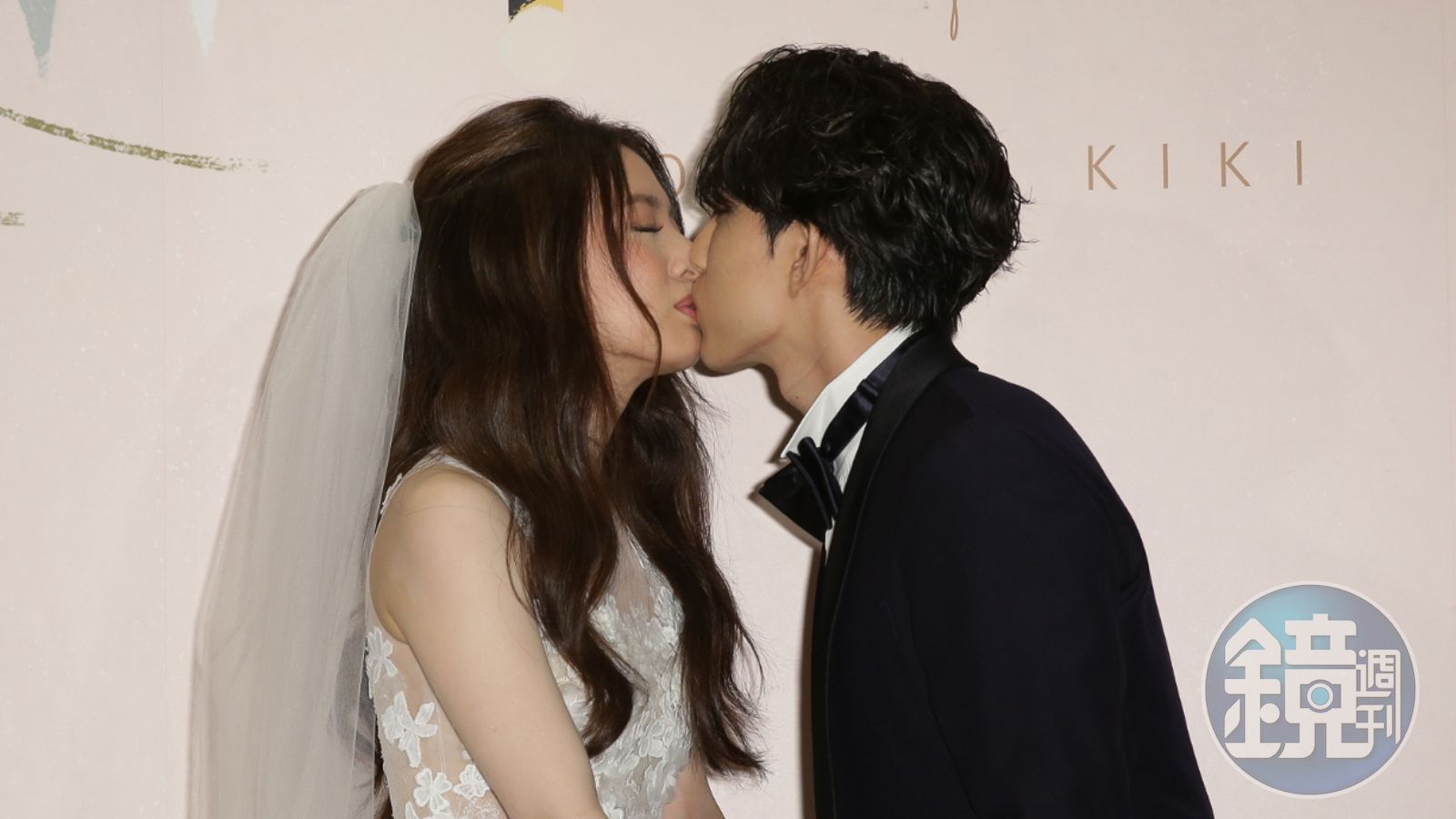 林宥嘉與KIKI面對媒體時,新娘穿著略為透視的立體蕾絲花瓣禮服現身美到翻,個性害羞低調的兩人還為了攝影畫面用不同角度連親三次,林宥嘉透露婚宴前一晚很放鬆,抱著開心的心情當新郎倌,對於KIKI曾放話要生一打,林宥嘉笑說:「我想今晚應該沒有辦法,等到有體力的時候就可以啟動計畫。」