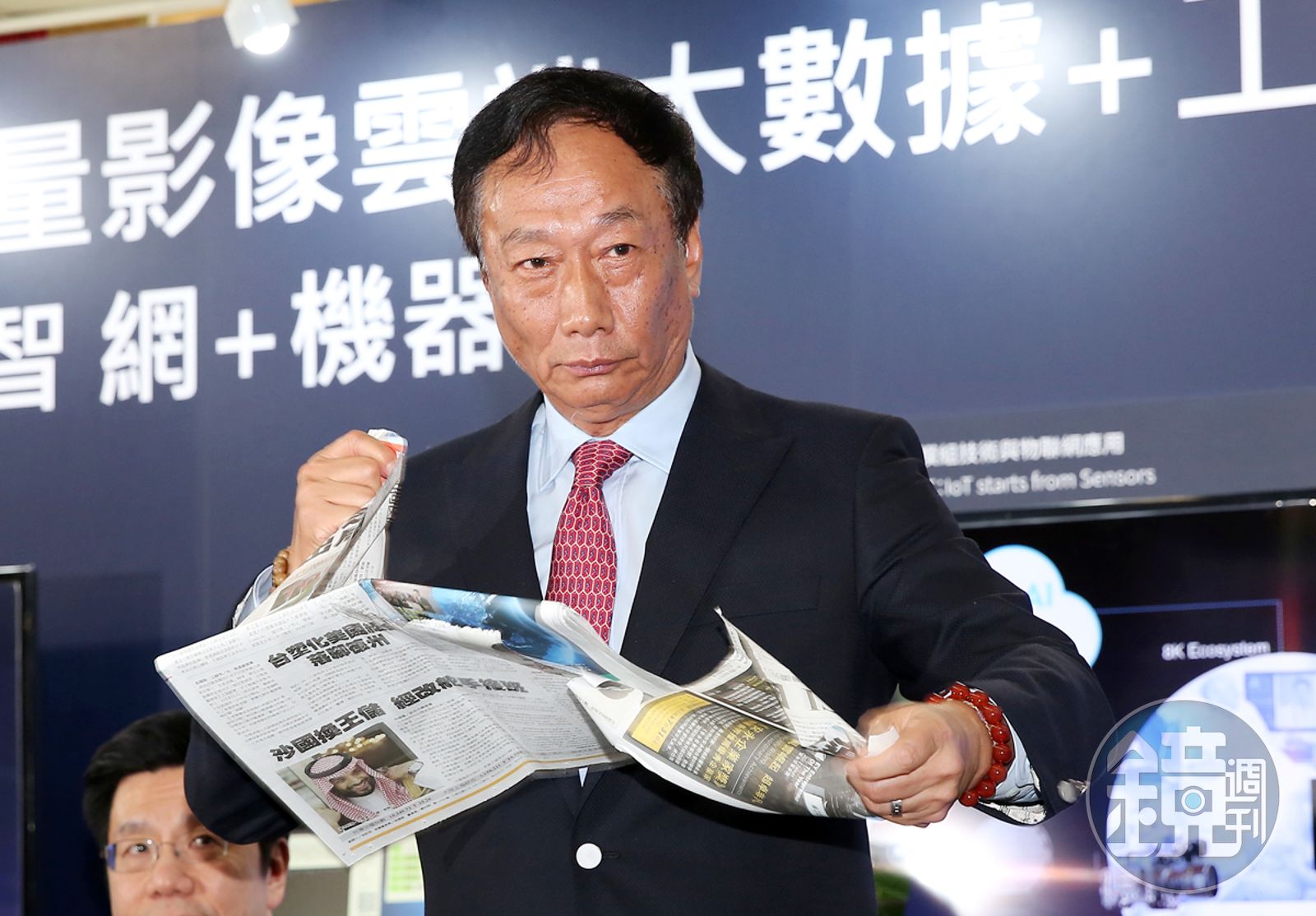 「鴻海沒有『出局』!這個總編輯將來一定會後悔!」上週四下午,鴻海總部5樓擠滿上百位中外媒體的記者會上,董事長郭台銘神情肅穆拿著「鴻海出局」斗大頭版標題的報紙霸氣的說。