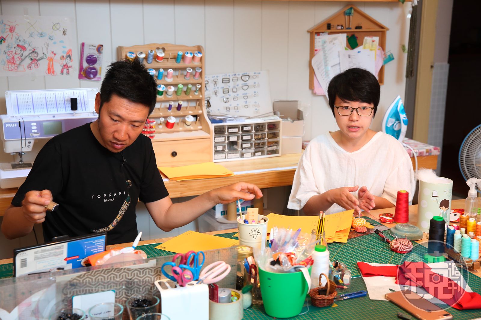 考量雙北市擁有最多供應商,比如迪化街永樂市場的花布、口金包金屬框廠商等,他們以1個月2萬多元的租金,租下土城一間離海山捷運站步行3分鐘的公寓2樓,成立工作室兼自住。