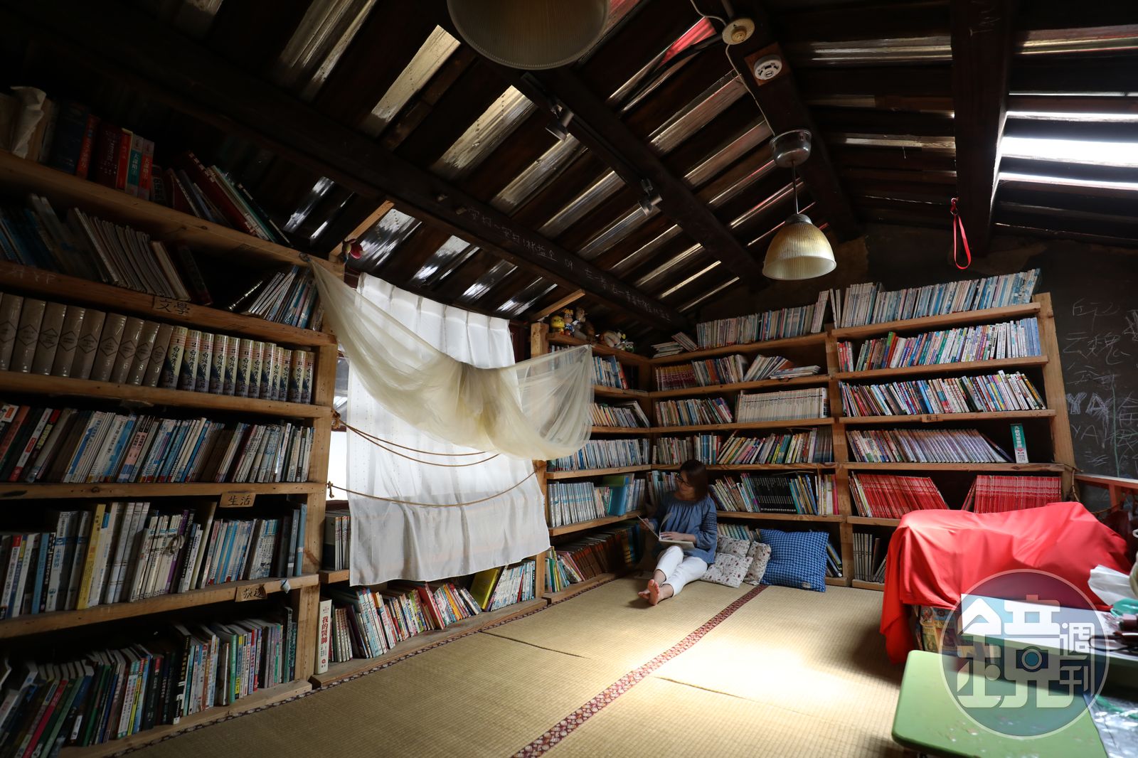 「這一晚像是睡在藏書閣!」書店主人盧文鈞笑著轉述香港旅人的形容,這字眼很貼切,閣樓牆面是直通屋頂的書架,堆疊文學、旅遊、生活各式書籍,沒翻到自己愛的書也不打緊,走下樓,上萬本書爬滿牆面,任由書蟲慢慢啃。